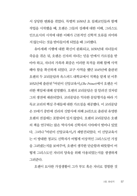 Á¸ ¿ÀÀ¢ÀÇ ÀºÇýÀÇ »î¿¡ ´ëÇÑ À̾߱â´Â ±×ÀÇ Ãâ»ý¿¡¼­ºÎÅÍ ½ÃÀ۵ȴÙ. ¿ÀÀ¢Àº ¾î¸° ½ÃÀýºÎÅÍ À¯´ÉÇÏ°í °¨¼ö¼ºÀÌ Ç³ºÎÇÑ ½ÅÇÐÀÚ¿´À¸¸ç, À×±Û·£µå ÃÖÃÊÀÇ ¾î¸°ÀÌ ÀÛ°¡ Áß ÇÑ ¸íÀ̾ú´Ù. ¼ö³â°£ÀÇ ¿¡½Ä½º ±³±¸ »ç¿ª µ¿¾È, 1640³â´ë ÈĹݿ¡ ÀÖ¾ú´ø ÈäÀÛ°ú ±â±Ù, ´Ù¼¸ »ìµµ ä ¾È µÇ´Â ¼¼ ÀÚ³àÀÇ Á×À½À» °ÞÀ¸¸ç, ¿ÀÀ¢Àº ÀÚ³àµéÀÇ ÂªÀº ÀλýÀ» ÀǽÄÇß°í, ºÎ¸ð¿Í ±³È¸µéÀÌ ÇöÀçÀÇ »î°ú ´Ù°¡¿Ã »î ¸ðµÎ¸¦ À§ÇØ ±×µéÀÇ ÀÚ³àµéÀ» Áغñ½ÃÄÑ¾ß ÇÒ Ã¥ÀÓÀÌ ÀÖÀ½À» ±íÀÌ ÀǽÄÇÏ°Ô µÇ¾ú´Ù. ±×ÀÇ ÃâÆÇµÈ Ã¥°ú ÇöÀç±îÁö ³²¾ÆÀÖ´Â ¼³±³¿¡¼­, ¿ÀÀ¢Àº ½ÅÀÚÀÇ ÀÚ³à´Â ¼¼·Ê¸¦ ¹Þ¾Æ¾ß Çϸç, ±âµ¶±³ ½Å¾Ó Çü¼ºÀÌ ¼¼·Ê¿Í ÇÔ²² ½ÃÀÛÇÑ´Ù°í ÁÖÀåÇß´Ù.