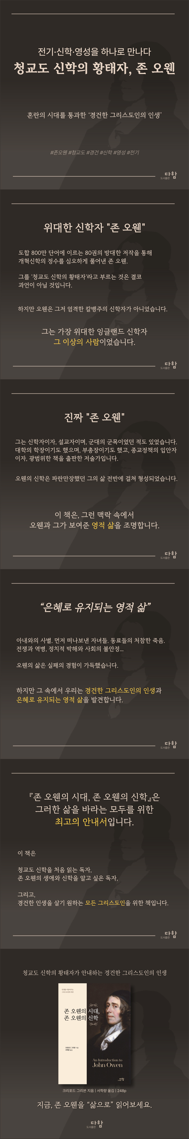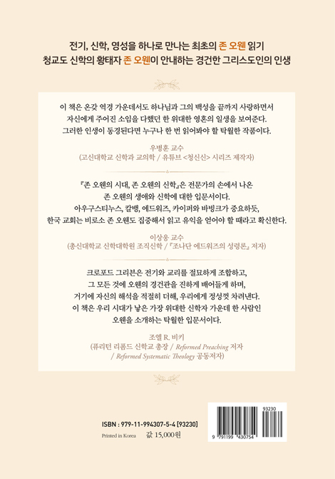 ÀÌ Ã¥Àº ¿ÀÀ¢ÀÇ ÆÄ¶õ¸¸ÀåÇÑ »ý¾Ö¸¦ ¸Å¿ì Èï¹ÌÁøÁøÇÏ°Ô Áø¼úÇϸ鼭µµ, ±×°¡ Á¦½ÃÇÑ ½ÅÇÐÀÇ ÇÙ½É(»ïÀ§ÀÏü·Ð, ±³È¸·Ð, ¼º·Ê·Ð, ±âµ¶·Ð, ¼º·É·Ð, Á¾¸»·Ð, ½Å¾Ó±³À°, ±×¸®°í Çϳª´Ô°úÀÇ ±³Á¦)À» °¡±ÞÀû ½±°Ô ¼Ò°³ÇÑ´Ù. ¿ÀÀ¢°ú °°ÀÌ ´ÙÃþÀûÀÎ »ç»ó°¡¸¦ ÀÌ Á¤µµÀÇ ºÐ·®À¸·Î ÃÖ´ëÇÑ °øÁ¤Çϸ鼭µµ ÀÌÇØÇϱ⠽±°í Àç¹ÌÀÖ°Ô Ç®¾î³»´Â ÀÏÀº ±×¸®ºìÀÌ ¾Æ´Ï¸é Çϱâ Èûµç ÀÏÀÏ °ÍÀÌ´Ù. ÀÌ Ã¥Àº ¿Â°® ¿ª°æ °¡¿îµ¥¼­µµ Çϳª´Ô°ú ±×ÀÇ ¹é¼ºÀ» ³¡±îÁö »ç¶ûÇϸ鼭 Àڽſ¡°Ô ÁÖ¾îÁø ¼ÒÀÓÀ» ´ÙÇß´ø ÇÑ À§´ëÇÑ ¿µÈ¥ÀÇ ÀÏ»ýÀ» º¸¿©ÁØ´Ù. ±×·¯ÇÑ ÀλýÀÌ µ¿°æµÈ´Ù¸é ´©±¸³ª Çѹø ÀоîºÁ¾ß ÇÒ Å¹¿ùÇÑ ÀÛǰÀÌ´Ù. ÀÌ Ã¥ÀÇ µ¶ÀÚ´Â Çϳª´Ô°ú ¼º°æ, Àλý°ú ¿ª»ç¿¡ ´ëÇØ »õ·Î¿î ÁöÆòÀÌ ¿­¸®´Â °æÇèÀ» ÇÒ °ÍÀÌ´Ù. ¸¶Áö¸·À¸·Î ÀÌ Ã¥¿¡ ³ª¿À´Â ¿ÀÀ¢ÀÇ Àλó ±íÀº ¹®ÀåÀ» ¼Ò°³ÇÑ´Ù.