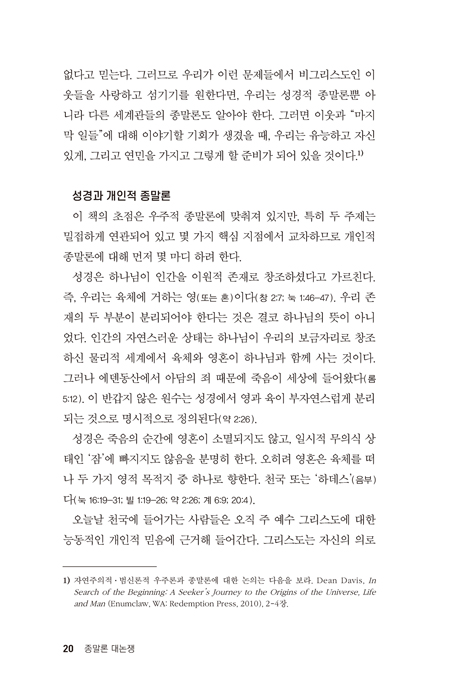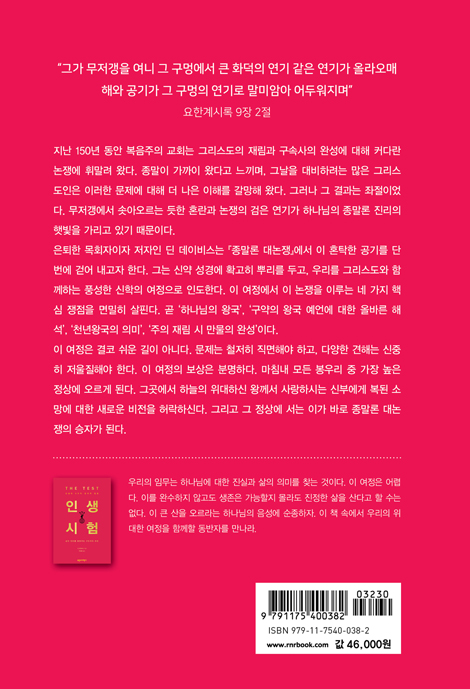 ¼º°æ Á¾¸»·Ð¿¡ °ü½É ÀÖ´Â À̵鿡°Ô ¡ºÇÏ´ÃÀÇ ³ôÀ¸½Å ¿Õ¡»Àº ÀÌ ¾î·Á¿î ÁÖÁ¦¸¦ ƯÈ÷ Æ÷°ýÀûÀ¸·Î ´Ù·é Ã¥À¸·Î Àß ¾Ë·ÁÁ® ÀÖ´Ù. ±×·¸´Ù¸é µò µ¥À̺ñ½ºÀÇ ÃÖ½ÅÀÛ ¡ºÁ¾¸»·Ð ´ë³íÀï¡»Àº ¾î¶»°Ô Æò°¡ÇØ¾ß ÇÒ±î? ÀÌ Ã¥¿¡¼ µòÀº 721ÂÊ ºÐ·®ÀÇ Ã¥À» ÀÐÀ» ½Ã°£ÀÌ ¾ø´Â Çϳª´ÔÀÇ ¾çµéÀ» ÇâÇÑ ¸ñÀÚÀÇ ¸¶À½À¸·Î ±ÛÀ» ¾´´Ù! ±×ÀÇ ¸ñÇ¥´Â ÃßÃø°ú ¼±Á¤ÁÖÀÇ(¿À´Ã³¯ ³Ê¹« ÈçÇÑ °Íµé)¿¡ ºüÁ® Á¾¸»·ÐÀÇ ¹°À» È帮°Ô ÇÏ´Â °ÍÀÌ ¾Æ´Ï¶ó, Çϳª´ÔÀÇ ¸»¾¸À» ½ÅÁßÇÏ°Ô ¼³¸íÇÔÀ¸·Î½á ¹°À» ¸¼°Ô ÇÏ´Â °ÍÀÌ´Ù. ƯÈ÷ ¡®±¸¾àÀÇ ¿Õ±¹ ¿¹¾ð¡¯À» ´Ù·ç´Â ±×ÀÇ Á¢±Ù¹ýÀÌ Àλó ±í´Ù. µòÀº ´Ü¼øÈ÷ ÀÌ·¯Àú·¯ÇÑ ¡®±¸¾àÀÇ ¿Õ±¹ ¿¹¾ð¡¯¿¡ ´ëÇÑ Àڱ⠻ý°¢À» Àü´ÞÇÏÁö ¾Ê´Â´Ù. ¿ÀÈ÷·Á ¸ÕÀú ¿ì¸®¸¦ ½Å¾àÀ¸·Î À̲ø¾î ±×¸®½ºµµ¿Í »çµµµéÀÌ ¡®±¸¾àÀÇ ¿Õ±¹ ¿¹¾ð¡¯À» ¾î¶»°Ô ÇØ¼®Çß´ÂÁö º¸¿© ÁÜÀ¸·Î½á, ¿ì¸®µµ ¶È°°ÀÌ ÇØ¼®ÇÒ ¼ö ÀÖ°Ô µ½´Â´Ù. ÀÌ´Â ÈǸ¢ÇÑ ¸ñÇ¥À̸ç, ±×°¡ À̸¦ ´Þ¼ºÇß´Ù°í ¹Ï´Â´Ù! ƯÁ¤ °üÁ¡(¹«Ãµ³â¼³)À» ¹ßÀü½ÃŰ¸é¼µµ µòÀº ¹Ý´ë °ßÇØ¿¡ °øÁ¤Çϰí Á¸ÁßÇϴ ŵµ·Î Á¢±ÙÇϸç, ÀÚ½ÅÀÇ ÁÖÀåÀ» µÞ¹ÞħÇÏ´Â °ÇÀüÇÑ ¼º°æÀû ±Ù°Å¸¦ Á¦½ÃÇÑ´Ù. ÀÌ Ã¥Àº ¡ºÇÏ´ÃÀÇ ³ôÀ¸½Å ¿Õ¡»º¸´Ù ºÐ·®ÀÌ ÂªÁö¸¸, µ¥À̺ñ½º´Â ¸¹Àº ¾î·Á¿î ¼º°æ ±¸ÀýµéÀ» ÃæºÐÈ÷ ³íÀÇÇÏ¸ç ¹Ý´ë °ßÇØ¿ÍÀÇ ´ëȸ¦ ÅëÇØ Ÿ´çÇÑ ÇØ¼®À» Á¦½ÃÇÑ´Ù. ¹Ù»Û ÁֺκÎÅÍ Á¾¸»·Ð¿¡ °ü½É ÀÖ´Â »ç¶÷±îÁö ¸ðµÎ¿¡°Ô ÀÌ Ã¥À» °·ÂÈ÷ ÃßõÇÑ´Ù. ¼º°æÀû Á¾¸»·ÐÀ» ¿©´Â ¿¼è¸¦ ¹ÞÀ¸¸é ¿ì¸® ¾Õ¿¡ ¿ÏÀüÈ÷ »õ·Î¿î ¼¼°è°¡ ¿¸°´Ù. ´«¿¡¼ ºñ´ÃÀÌ ¶³¾îÁ® ¸ðµç ¼º°æ ¼Ó¿¡¼ ±×¸®½ºµµ¿Í ±×¸®½ºµµÀÇ ¾ð¾à, ±×¸®½ºµµÀÇ ¿Õ±¹, ±×¸®½ºµµÀÇ ¹é¼ºÀ» º¸°Ô µÈ´Ù. ¡ºÁ¾¸»·Ð ´ë³íÀï¡»¿¡¼ µò µ¥À̺ñ½º´Â ¿ì¸®¿¡°Ô ±× ¿¼è¸¦ ÁØ´Ù.