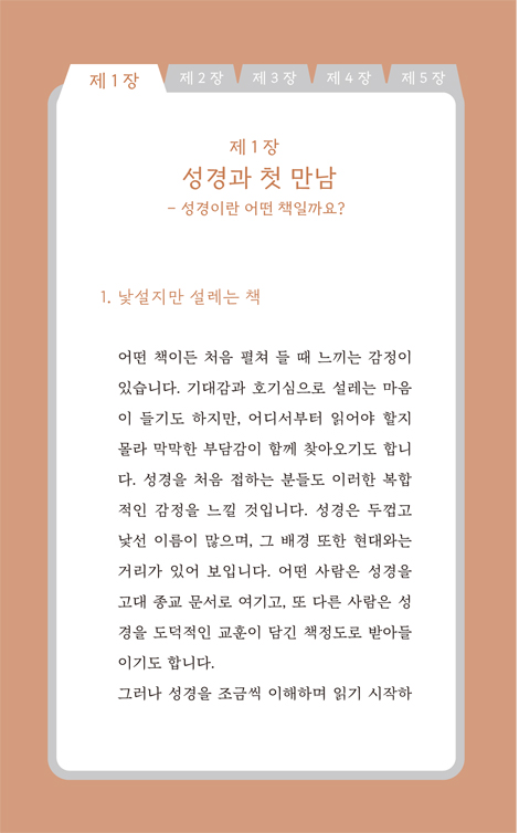 Á¦1Àå ¼º°æ°ú ù ¸¸³²: ¼º°æÀ» óÀ½ Á¢ÇÏ´Â À̵éÀÌ ´À³¢´Â ¸·¸·ÇÔÀ» ÇØ¼ÒÇϰí, ¼º°æÀÌ ¿ì¸®ÀÇ »îÀ» º¯È½ÃŰ´Â ¡®Çϳª´ÔÀÇ ¸»¾¸¡¯ÀÓÀ» °Á¶ÇÕ´Ï´Ù.