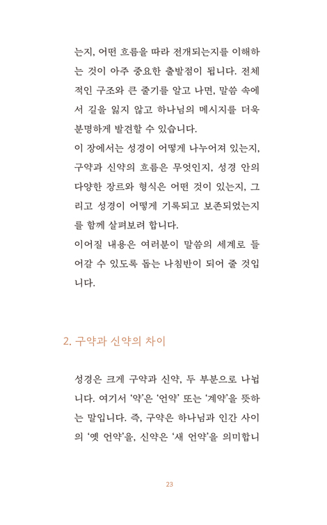 Á¦2Àå ¼º°æÀº ¾î¶»°Ô ±¸¼ºµÇ¾î ÀÖ³ª¿ä?: ¹æ´ëÇÑ ¼º°æÀÇ ±¸¾à°ú ½Å¾àÀÇ Â÷ÀÌ, °¢ ºÎºÐÀÇ È帧°ú ÇÙ½É ³»¿ëÀ» ¼³¸íÇÏ¿© µ¶ÀÚµéÀÌ ±æÀ» ÀÒÁö ¾Êµµ·Ï µ½½À´Ï´Ù.