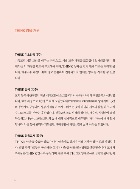¡®THINK ±âÃʾçÀ°¡¯Àº ¡®THINK ¾çÀ° ½Ã¸®ÁÀÇ ÀÔ¹® °úÁ¤À¸·Î ½Å¾Ó»ýȰÀ» ½ÃÀÛÇÏ´Â ÃʽÅÀÚ¿Í ¾ÆÁ÷ ¼¼·Ê¸¦ ¹ÞÁö ¾ÊÀº ±âÁ¸ ½ÅÀÚ¸¦ ´ë»óÀ¸·Î ÇÕ´Ï´Ù. ±âµ¶±³ÀÇ ±âÃÊ ±³¸®¸¦ ü°èÀûÀ¸·Î ¹è¿ìµµ·Ï ±¸¼ºµÇ¾î ÀÖÀ¸¸ç, ¼¼·Ê ±³À° °úÁ¤µµ Æ÷ÇÔÇϰí ÀÖ½À´Ï´Ù.
