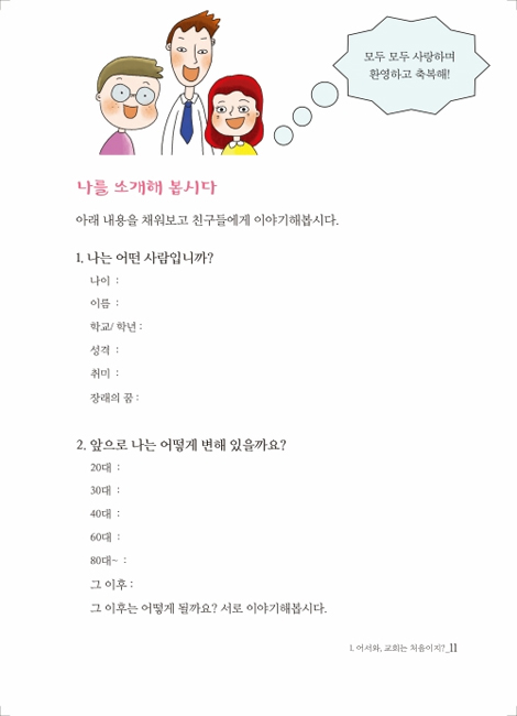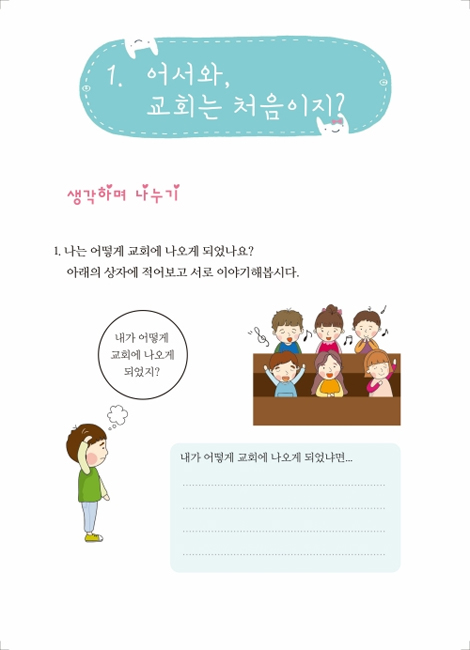 ù°, °¡Àå º¹À½ÀûÀÎ ¸Þ½ÃÁö·Î ²Ù¸ì´Ù. ÀÌ ±³Àç´Â ±³È¸¿¡ óÀ½ ³ª¿Â ¾ÆÀ̳ª, ½Å¾ÓÀÇ ±âÃʰ¡ ºÎÁ·ÇÑ Ã»¼Ò³âÀ» À§ÇØ ½Å¾Ó»ýȰÀÇ ±âÃʸ¦ ´ÙÁö´Â °úÁ¤ÀÌ´Ù. µÑ°, ÁÖÁ¦°¡ ºÐ¸íÇÏ°í ¸í·áÇÏ´Ù. °£´ÜÇϸ鼭µµ ¹Ýº¹ÀûÀÎ °ÍÀÌ ÀÌ ±³ÀçÀÇ Æ¯Â¡ÀÌ´Ù. ¼Â°, ¸ðµç ³»¿ëÀº ¸»¾¸ÀÇ ±Ù°Å·Î ±âȹµÇ¾î ÀÖ´Ù. ³Ý°, ÀÌ ±³Àç´Â ±³È¸¿¡ Àß Á¤ÂøÇÒ ¼ö ÀÖµµ·Ï µ½´Â ±³ÀçÀÌ´Ù. ±³È¸¿¡ óÀ½ ³ª¿Â ¾ÆÀ̰¡ ¾î»öÇÔÀ» ±Øº¹ÇÏ°í ±³È¸¿¡ Àß ³ª¿À¸ç Á¤ÂøÇÒ ¼ö ÀÖµµ·Ï ±âȹµÇ¾ú´Ù. ¶ÇÇÑ »ýȰ ¼ÓÀÇ ¹ÏÀ½À¸·Î ¼ºÀå½Ã۴µ¥ ÃÊÁ¡À» µÎ¾ú´Ù.
