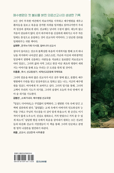 _½ÉÀçµÎ Çѱ¹´©°¡È¸ ÀÌ»çÀå, ¾Ë¹Ù´Ï¾Æ ¼±±³»ç ÀÌ Ã¥À» ÅëÇØ ¸¶Æ¼ À×°ñµå¶ó´Â ¶Ç ÇÑ ºÐÀÇ ¼±±³Àû »îÀ» ¾Ë°Ô µÇ¾î °¨»çÇÏ´Ù. »ì¾Æ¼ µ¹¾Æ¿À´Â °ÍÁ¶Â÷ ºÒÈ®½ÇÇÑ º¹À½ÀÇ ¹Ì°³Ã´Áö¸¦ ÇâÇØ ¿ÀÁ÷ Çϳª´ÔÀ» ÀÇÁöÇÏ¸ç ³ª¾Æ°¬´ø ÀþÀº ±×¸®½ºµµÀÎ, ¿ÜÁöÀο¡ ´ëÇÑ °öÁö ¾ÊÀº ½Ã¼±°ú ¿¾ÇÇÑ È¯°æ ¼Ó¿¡¼ Çϳª´ÔÀÇ ÇÔ²²ÇϽɰú °ø±ÞÇϽÉÀ» ÀÇÁöÇϸç 28³âÀ» ÇѰᰰÀÌ °É¾ú´ø º¹À½ÀüµµÀÚÀÌÀÚ ±³À°ÀÚ, °¡³°ú ¹Ì½Å°ú ºñÀ§»ýÀûÀÎ Àϻ󿡼 Áúº´¿¡ ½ÅÀ½ÇÏ´Â »ç¶÷µéÀ» Ä¡·áÇÏ°í µ¹º¸¾Ò´ø ÀÇ·á¼±±³»ç ¸¶Æ¼ À×°ñµå, ±×³àÀÇ »î°ú »ç¿ª ±×¸®°í ÇѰ À̳² ÃÖÃÊÀÇ º´¿øÀÌ ¼¼¿öÁö´Â À̾߱⸦ ÅëÇØ ¿À´Ã ¿ì¸®´Â Å« µµÀüÀ» ¹Þ°Ô µÉ °ÍÀÌ´Ù. _ÀÌÁ¾ÈÆ ¸ñ»ç, ¼±±³µ¿¿ø°¡, ¼¼°è¼±±³°øµ¿Ã¼ ±¹Á¦´ëÇ¥ 1897³â, ¼¸¥ »ìÀÇ ½Ì±Û ¿©¼ºÀÌ Á¶¼± ¶¥À» ¹â¾Ò´Ù. Á¤µç °¡Á·°ú °øµ¿Ã¼¿¡ ¡®´ÞÄÞÇÑ ½½ÇÄ¡¯À̶ó ºÎ¸¥ À̺°À» ¼±¹°Çϰí, ³¸¼± ¶¥°ú ¾î»öÇÑ ¹®È ¼Ó¿¡ ½º¸çµé¾î ¾ÆÇ ÀÌµé °ç¿¡ ¸Ó¹°·¶°í º¹À½ ¾Õ¿¡ ÀÚ½ÅÀ» ±ú¶ß·Á º¹À½À» »ì¾Æ³Â´Ù. ±×³àÀÇ °ÉÀ½À» µû¶ó ¸¹Àº ¼±±³»ç°¡ À̰÷ ÀüÁÖ ¶¥¿¡ ¿Ô°í, ¹¯Çû´Ù. ¿¹¼öº´¿ø¿¡¼ ¼ö·ÃÀ» ¹Þ°í ÀÓ»ó°úÀåÀ¸·Î ÀÏÇϰí ÀÖ´Â ³ª´Â, Áö±ÝÀÇ ¿¹¼öº´¿øÀ» À×°ñµå ¿©»ç¿¡°Ô ²À º¸¿©ÁÖ°í ½Í´Ù. ±×³à°¡ ½ÉÀº ¼Ò¸ÁÀÇ ¾¾¾ÑÀº 127³âÀÇ ½Ã°£À» Áö³ª ±â´î ¸¸ÇÑ ³ª¹«·Î ÀÚ¶ó³µ°í, ±×³àÀÇ Çå½ÅÀ» À̾±â ¿øÇÏ´Â ¸¹Àº ÈĹèµéÀÌ À̰÷¿¡ ±êµé¾î ¼ºÀåÇϰí ÀÖ´Ù. ±×³àÀÇ Àϱ⸦ ÅëÇØ, ±×³àÀÇ °í¹éÀÌ ¿ì¸®ÀÇ ±âµµ°¡ µÇ±â¸¦, ±×³àÀÇ ¼û°áÀÌ ¿À´ÃÀÇ ¿ì¸® ¾È¿¡¼ »ì¾Æ ¼û ½¬±â¸¦ ±âµµÇÑ´Ù. _±èº´¼± ¼Òȱ⳻°ú Àü¹®ÀÇ, ¿¹¼öº´¿ø ¼±±³±¹Àå ½Ì±ÛÀÇ ¸öÀ¸·Î Á¶¼±¿¡ ¿Í¼ ÀüÁÖ¿¡ ù º´¿øÀ» ¼¼¿ì°í, ¿¹¼ö´ÔÀÇ ¸¶À½À¸·Î ȯÀÚ¿Í º¹À½À» ÇÔ²² ǰ¾ú´ø ÇÑ ¿©¼º ¼±±³»çÀÇ ±â·Ï, ¡º¸¶Æ¼ À×°ñµåÀÇ Àϱ⡻´Â ²Ù¹Ò¾øÀÌ ´ã¹éÇÏ´Ù. ±× Æò¹üÇÑ ±â·Ï ¼Ó¿¡ ´ã±ä °í¹é¿¡ ÁýÁßÇÏ°Ô µÈ´Ù. ¡°²÷ÀÓ¾ø´Â ±³Á¦ ¼Ó¿¡¼ ¾Æ¹öÁöÀÇ ÀεµÇϽɰú ´É·ÂÀ» ±¸Çϰí ÁÖ´ÔÀÇ °¡¸£Ä§À» ´õ ±íÀÌ ¾Ë°Ô ÇϿɼҼ. ÇÑ ¼ø°£µµ À̱âÀûÀÌÁö ¾Ê°Ô µµ¿ì¼Ò¼. Áø½Ç·Î ¿øÇÏ¿À´Ï, °ÅÀú ¹Þ¾ÒÀ¸´Ï °ÅÀú ÁÙ ¼ö ÀÖ°Ô ÇϼҼ.¡± ´ä´äÇÑ Çö½Ç ¼Ó¿¡¼ º¹À½À» »ì¾Æ³»±â ¿øÇÏ´Â ¸ðµç ¼±±³Àεé°ú Ÿ¹®È ¼±±³»ç Áö¸Á»ýµéÀÌ ÀÌ Ã¥À» ÅëÇØ ±×³àÀÇ ´Ü¼øÇÏ°í ºÐ¸íÇÑ ¿µÀû ³ªÄ§¹ÝÀ» ¹ß°ßÇϱ⠹ٶõ´Ù. _ÃÖ¿é ¼±±³»ç, ¼±±³Çѱ¹ »ç¹«ÃÑÀå ¸ñÂ÷