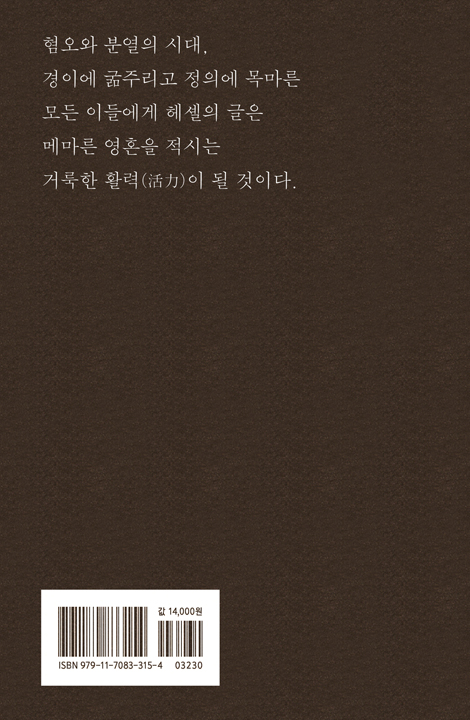 ÀÌ Ã¥Àº Çì¼ÐÀÇ ¹æ´ëÇÑ ÀúÀÛ Áß °¡Àå ºû³ª´Â ¹®À常À» ¾ö¼±ÇÏ¿© ±×ÀÇ ¿µÀû Á¤¼ö(ïñâÐ)¸¦ ÇÑ ±Ç¿¡ ´ãÀº °áÁ¤Ã¼´Ù. ±×°¡ ÀüÇÏ´Â Çϳª´ÔÀº ¸Õ °÷ÀÇ °üÁ¶ÀÚ°¡ ¾Æ´Ï¶ó, Àΰ£ÀÇ ¿ª»ç¿¡ Ä¡¿ÇÏ°Ô °³ÀÔÇÏ¸ç ¿ì¸®ÀÇ ÀÀ´äÀ» ¿ä±¸ÇÏ´Â ºÐÀÌ´Ù. Çø¿À¿Í ºÐ¿ÀÇ ½Ã´ë, °æÀÌ¿¡ ±¾ÁÖ¸®°í Á¤ÀÇ¿¡ ¸ñ¸¶¸¥ ¸ðµç ÀÌ¿¡°Ô Çì¼ÐÀÇ ÅëÂûÀº ¸Þ¸¶¸¥ ¿µÈ¥À» Àû½Ã´Â °Å·èÇÑ È°·ÂÀÌ µÉ °ÍÀÌ´Ù.