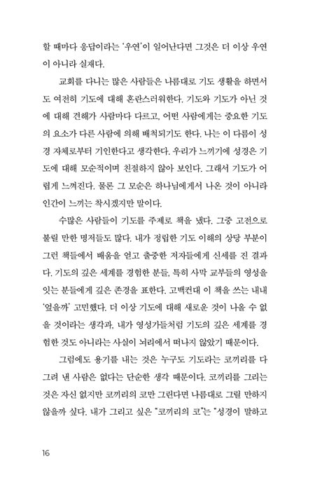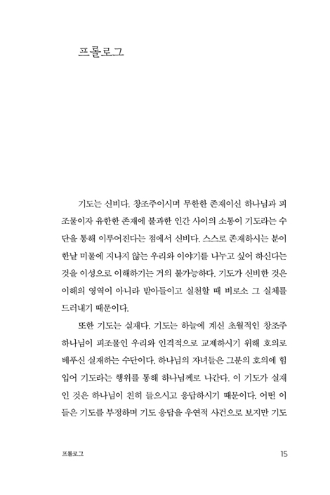 ±âµµ¿¡ °üÇÑ °æ°Ç ¼­ÀûÀº ÀÌ¹Ì ¼ö¾øÀÌ ¸¹´Ù. ±×·±µ¥µµ ¶Ç ´Ù¸¥ ±âµµ Ã¥ÀÌ ÇÊ¿äÇÒ±î? ÀÌ¿¡ ´ëÇØ ¡°¿¹! ¿©±â ÀÖ½À´Ï´Ù¡±¶ó°í ´ã´ëÈ÷ ´äÇÏ´Â ÀúÀÚ°¡ ÀÖ´Ù. ¹Ù·Î ±èµ¿ÀÏ ¸ñ»çÀÇ ¡º¿¹¼ö·Î ±âµµÇϱ⡻´Ù. Ã¥À» ÃßõÇÏ´Â ÀÌÀ¯´Â ¼¼ °¡Áö´Ù.