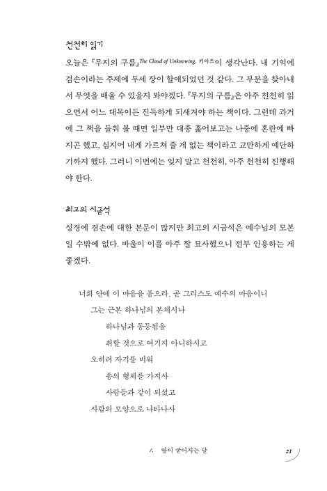 ¸®Ã³µå Æ÷½ºÅͰ¡ º¸¿© ÁÖ´Â °â¼ÕÀº ºÒ°¡´ÉÇÑ ¸ð½ÀÀ» ¾Ö½á Èä³» ³»¾ß ÇÏ´Â ºÎ´ã½º·¯¿î ´ö¸ñÀÌ ¾Æ´Ï¶ó Çϳª´ÔÀÇ ¼±ÇϽɿ¡ ÁýÁßÇÏ´Â Á¸Àç ¾ç½ÄÀÌ´Ù. ±×·² ¶§ ¸¶À½Àº ÀÚ¿¬½º·´°Ô ³Ë³ËÇØÁö°í, ¸Å»ç¿¡ ³ë½ÉÃÊ»çÇÏÁö ¾ÊÀ¸¸ç, ´õ ÃÊ¿¬ÇØÁø´Ù. ³õÃļ´Â ¾È µÉ Ã¥ÀÌ´Ù!