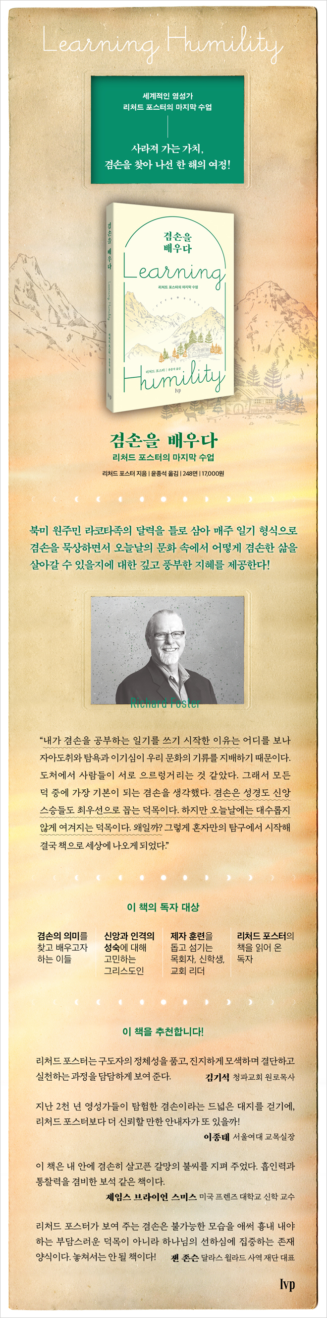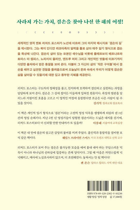 ÀÌ Ã¥Àº °â¼ÕÀÇ ÀÇ¹Ì¿Í °¡Ä¡¸¦ ã¾Æ ³ª¼± 1³â°£ÀÇ ¿µÀû ¼ø·Ê±â´Ù. ¸®Ã³µå Æ÷½ºÅÍ´Â ¿À´Ã³¯ ¸¹Àº »ç¶÷µéÀÌ ¹«¾ùº¸´Ù Àڱ⸸Á·À» Áß½ÃÇÏ¸é¼ ÀھƵµÃë¿Í À̱â½É¿¡ ºüÁ® °â¼ÕÀ̶ó´Â Áß¿äÇÑ °¡Ä¡¸¦ ÀÒ¾î °¡°í ÀÖÀ½À» ¹ß°ßÇÑ´Ù. ÀÚ±â ÀÚ½ÅÀ» ÀÖ´Â ±×´ë·Î ¹Ù¶óº¸Áö ¸øÇÒ »Ó ¾Æ´Ï¶ó ŸÀο¡ ´ëÇÑ °ü½Éµµ ÀÒ¾î¹ö¸° °ÍÀÌ´Ù. ÀÌ¿¡ Æ÷½ºÅÍ´Â °â¼ÕÀ̾߸»·Î Àΰ£ÀÇ »î¿¡ ÀÖ¾î °¡Àå ±âº»ÀÌ µÇ´Â ´ö¸ñÀÓÀ» ±ú´Ý°í ¸ÅÁÖ Àϱâ Çü½ÄÀ¸·Î °â¼ÕÀ» ¹¬»óÇØ °£´Ù. °â¼ÕÀÇ »ì¾Æ ÀÖ´Â ¸ðº»ÀÎ ¿¹¼ö´ÔÀ» ºñ·ÔÇØ Ŭ·¹¸£º¸ÀÇ º£¸£³ª¸£¿Í Å丶½º ¾Æ ÄÍÇǽº, ³ë¸®Ä¡ÀÇ ÁÙ¸®¾È, ¾Øµå·ç ¸Ó¸® ±×¸®°í °³ÀÎÀûÀÎ ¹þµé¿¡ À̸£±â±îÁö ´Ù¾çÇÑ Ãâó¿¡¼ ¾òÀº ÅëÂûÀ» º¸¿© ÁØ´Ù. ´õºÒ¾î ±× ÀÚ½ÅÀÌ »îÀÇ ¡®ÀÛÀº ±¸¼®µé¡¯¿¡¼ °â¼ÕÀ» ¹è¿ì°í ½ÇõÇÑ °æÇèÀ» µé·ÁÁÜÀ¸·Î½á ¿À´Ã³¯ÀÇ ¹®È ¼Ó¿¡¼ ¿ì¸®°¡ ¾î¶»°Ô °â¼ÕÇÑ »îÀ» »ì¾Æ°¥ ¼ö ÀÖÀ»Áö¿¡ ´ëÇÑ ±í°í dzºÎÇÑ ÁöÇý¸¦ Á¦°øÇÑ´Ù.