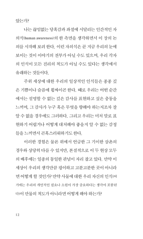 ³ª´Â ²÷ÀÓ¾ø´Â ´çȤ°¨°ú ÁÂÀý¿¡ ½Ã´Þ¸®´Â Àΰ£ÀûÀÎ ÀÚÀǽÄ(human awareness)ÀÇ ÇÑ Ãø¸éÀ» »ý°¢ÇÏ¸é¼ ÀÌ ÀåÀÇ ³íÀǸ¦ ½ÃÀÛÇØ º¸·Á ÇÑ´Ù. ÀÌ·± ÀÚÀǽÄÀº °ð Áö±Ý ¿ì¸®ÀÇ ´«¿¡ º¸ÀÌ´Â °ÍÀÌ À̾߱âÀÇ ÀüºÎ°¡ ¾Æ´Ò ¼öµµ ÀÖÀ¸¸ç, ¿ì¸® °¢ÀÚÀÇ ÀνÄÀÌ ¸ðµç Áø¸®ÀÇ Ã´µµ°¡ ¾Æ´Ò ¼öµµ ÀÖ´Ù´Â »ý°¢¿¡¼ À¯·¡ÇÏ´Â °ÍµéÀÌ´Ù.