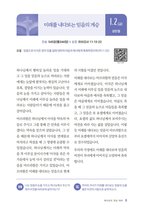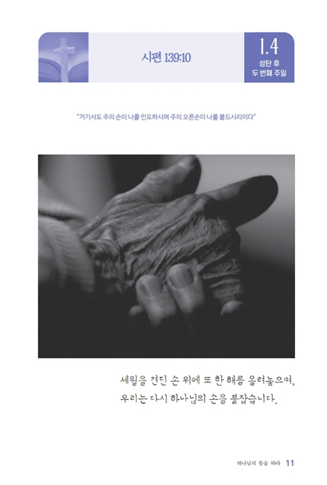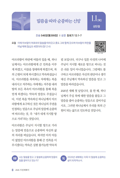 <Çϳª´ÔÀÇ ¶æÀ» µû¶ó>¿Í ºÎ·Ï <°¡Á¤¿¹½Ä¼>°¡ Ãâ°£µÇ¾ú½À´Ï´Ù. <Çѱ¹±âµ¶±³°¡Á¤»ýȰÇùȸ>°¡ ÁÖ°üÇÏ¿© 1988³âºÎÅÍ ¸Å³â °¡Á¤¿¹¹è¼¸¦ ¹ß°£Çؿ ÀÌ·¡ ¿ÃÇØµµ Çϳª´ÔÀÇ ¶æÀ» µû¶ó¶ó´Â Á¦¸ñÀÇ °¡Á¤¿¹¹è¼¸¦ ¹ß°£ÇÏ°Ô µÊÀ» Çϳª´Ô²² °¨»çµå¸®¸ç, ¿µ±¤µ¹¸³´Ï´Ù. .* ÆòÀϺР: 7°³ ±³´Ü 104ÀÎÀÇ ¸ñȸÀÚµéÀÌ ±³È¸·Â¿¡ µû¸¥ º»¹®¼³±³¸¦ ÇÔ²² ÁýÇÊÇØÁּ̽À´Ï´Ù. (Ưº°È÷ Âù¼Û°¡¸¦ QRÄÚµå·Î ³Ö¾ú½À´Ï´Ù.) * ÁÖÀϺР: 2026³â °¡Á¤¿¹¹è¼ ÁÖÀϺÐÀº ¡®¸»¾¸°ú »çÁøÀ» ÅëÇÑ ÇÑÁÙ ¹¬»ó¡¯ÀÔ´Ï´Ù. - 2026 °¡Á¤¿¹¹è¼ ÁÖÀϺÐÀº Çѳ²±³È¸ ±è¹Î¼ö ¸ñ»ç´ÔÀÌ Á÷Á¢ ÂïÀº Èæ¹é »çÁø°ú ÇÑÁÙ ¹¬»óÀ¸·Î ÁغñÇÏ¿´½À´Ï´Ù. »çÁø ÇÑ ÀåÀÌ ÀüÇÏ´Â »ç»öÀÇ ¿©¿î°ú ¸»¾¸ ¼Ó Áø¸®°¡ ¾î¿ì·¯Á®, ÁÖÀϸ¶´Ù ¿ì¸®ÀÇ ¸¶À½À» Â÷ºÐÈ÷ ¸ØÃß°Ô ÇÏ°í ¿µÈ¥À» ÀºÇý·Î ä¿öÁÙ °ÍÀÔ´Ï´Ù. * º°Ã¥ºÎ·Ï : <2026 °¡Á¤¿¹½Ä¼>´Â »ýÀÇ Áֱ⿡ µû¶ó °¡Á¤¿¹½ÄÀÇ ±¸¼ºÀ» Ãູ¿¹½Ä, °¨»ç¿¹½Ä, ¸íÀý¿¹½Ä, Èñ¸Á¿¹½ÄÀ¸·Î ±¸ºÐÇÏ¿´À¸¸ç ¼³±³¹®Àº »õ·Ó°Ô ÁýÇÊÇß½À´Ï´Ù. À̹øºÎÅÍ º°Ã¥ºÎ·ÏÀÌ ¾Æ´Ñ °¡Á¤¿¹¹è¼¿Í ÇÕº»À¸·Î ¸¸µé¾îÁý´Ï´Ù. * CBS ¹æ¼Û : °¡Á¤¿¹¹è¼ <Çϳª´ÔÀÇ ¶æÀ» µû¶ó> ¸ÅÀÏ »õº® ťƼ¹æ¼Û¼±±³·Î CBS ¹æ¼Û°ú Çù·ÂÇϰí ÀÖ½À´Ï´Ù. -°¡Á¤¿¹¹è¼ <Çϳª´ÔÀÇ ¶æÀ» µû¶ó> ¹æ¼Û½Ã°£- CBS¡®³»°¡ ¸ÅÀÏ ±â»Ú°Ô¡¯¿ù~Åä »õº® 5½ÃºÎÅÍ FM 93.9 Mhz [¹ß°£»ç] °¡Á¤ÀÇ ¼³°èÀÚ´Â Çϳª´ÔÀ̽ʴϴÙ. ¿ì¸®ÀÇ °¡Á¤À» ¼¼¿ì½Å ºÐµµ Çϳª´ÔÀ̽øç, µû¶ó¼ °¡Á¤ÀÇ ÁÖÀÎ ¿ª½Ã Çϳª´ÔÀ̽ʴϴÙ. Çϳª´Ô²²¼´Â ´ç½ÅÀÌ ¼¼¿ì½Å °¡Á¤¿¡ Ç×»ó ÀÓÀçÇÏ½Ã¸ç µ¿ÇàÇϽʴϴÙ. À̰ÍÀÌ ¹ÏÀ½ÀÇ °¡Á¤ÀÌ °í¹éÇØ¾ß ÇÒ ½Å¾ÓÀÇ ³»¿ëÀÔ´Ï´Ù. ±× °í¹éÀÌ ÂüµÇ´Ù¸é, °¡Á¤ÀÌ °¡Àå ¸ÕÀú µÎ¾î¾ß ÇÒ ¿ì¼±¼øÀ§´Â Çϳª´ÔÀ» ¿¹¹èÇÏ´Â ÀÏÀÔ´Ï´Ù. ¿¹¹è´Â °¡Á¤ÀÇ ÁÖÀÎÀ̽ŠÇϳª´ÔÀ» ÇâÇÑ Àǹ«ÀÌÀÚ Æ¯±ÇÀÔ´Ï´Ù. ¿¹¹è ¼Ó¿¡¼ ½Å¾ÓÀÌ Àü½ÂµÇ°í °¡Á· °£ÀÇ »ç¶ûÀÌ Ç³¼ºÇØÁö¸ç °¡Á¤ ¾È¿¡´Â Ä¡À¯¿Í ȸº¹ÀÌ ÀϾ´Ï´Ù. ¿¹¹èÇÏ´Â ¹ÏÀ½ÀÇ °¡Á¤Àº ¼¼»ó dzÁ¶¿¡ ¹°µéÁö ¾Ê°í ´õ¿í °Å·èÇØÁý´Ï´Ù. ±×·± Àǹ̿¡¼ °¡Á¤¿¹¹è´Â ÂüÀ¸·Î º¹µÈ ÀÏÀÔ´Ï´Ù. -ÇãÁ¤° ¸ñ»ç(Çѱ¹±âµ¶±³°¡Á¤»ýȰÇùȸ ȸÀå) [¿«°í³ª¼] 2026³â °¡Á¤¿¹¹è¼¸¦ ¿«À¸¸ç, ¹¬»ó ¼Ó¿¡ ±íÀÌ ½º¸çÀÖ´Â »îÀÇ ¾î·Á¿ò°ú °í³ÀÇ À̾߱âµé¿¡ ÁÖ¸ñÇß½À´Ï´Ù. 104ºÐÀÇ ÇÊÁøÀÌ 3Àϰ£ÀÇ ¼º¼Àϰú ¸»¾¸À» µû¶ó ´ã¾ÆÁֽŠÁø¼ÖÇÑ ¹¬»óµéÀº ÀÌ ½Ã´ë¸¦ »ì¾Æ°¡´Â ¸ðµç ¼ºµµ¿Í ¸ñȸÀÚµéÀÌ ÇÔ²² °È´Â ¼ø·ÊÀÚÀÇ ±æÀÓÀ» ±ú´Ý°Ô ÇÕ´Ï´Ù. ¸¶Ä¡ °¢ÀÚÀÇ ÀÚ¸®¿¡¼ Ȧ·Î ½Î¿ì´Â µíÇÏÁö¸¸, ½ÇÀº ¿ì¸®°¡ °°Àº ½Ã·ÃÀÇ ÅͳÎÀ» Åë°úÇϰí ÀÖ´Ù´Â °í¹é°ú À§·Î°¡ ´ã°Ü ÀÖ½À´Ï´Ù. ÇÏÁö¸¸ ¿ì¸®´Â ¾Ð´Ï´Ù. ½Ã·Ã°ú ¾ÆÇÄÀÇ ±ä ÅͳΠ³¡¿¡´Â ¹Ýµå½Ã Èñ¸ÁÀÇ ºûÀÌ ±â´Ù¸®°í ÀÖ´Ù´Â »ç½ÇÀ». ÀÌ ¿¹¹è¼´Â ¹Ù·Î ±× Èñ¸ÁÀ» ÇâÇÑ ÀÌÁ¤Ç¥°¡ µÉ °ÍÀÔ´Ï´Ù -ÀÌ¿µ¹Ì ¸ñ»ç(Çѱ¹±âµ¶±³°¡Á¤»ýȰÇùȸ Ãѹ«) ÀúÀÚ ¹× ¿ªÀÚ ¼Ò°³