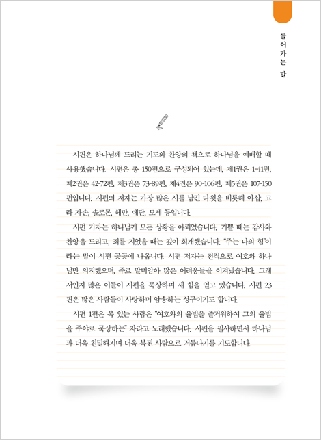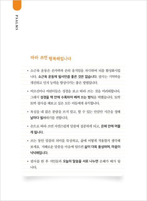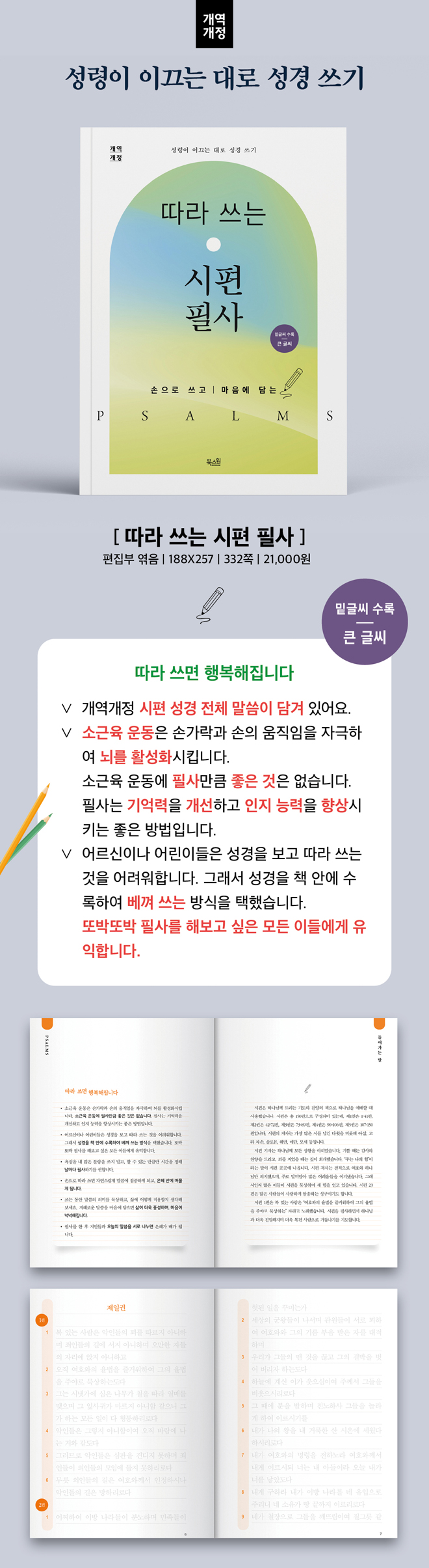 • ¾î¸£½ÅÀ̳ª ¾î¸°À̵éÀº ¼º°æÀ» º¸°í µû¶ó ¾²´Â °ÍÀ» ¾î·Á¿öÇÕ´Ï´Ù. ±×·¡¼­ ¼º°æÀ» Ã¥ ¾È¿¡ ¼ö·ÏÇÏ¿© º£²¸ ¾²´Â ¹æ½ÄÀ» ÅÃÇß½À´Ï´Ù. ¶Ç¹Ú¶Ç¹Ú Çʻ縦 ÇØº¸°í ½ÍÀº ¸ðµç À̵鿡°Ô À¯ÀÍÇÕ´Ï´Ù.