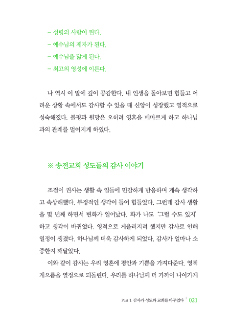 ¡°ÀÌ Ã¥Àº °¨»ç°¡ ¾î¶»°Ô ¼ºµµµéÀÇ »îÀ» ¹Ù²Ù¾ú´ÂÁö¸¦ º¸¿©ÁØ´Ù. ÀÏ»óÀÇ ¾ð¾î°¡ ´Þ¶óÁö°í, °¨Á¤ÀÌ º¯ÈµÇ¸ç, ¿µÀû ºÐÀ§±â°¡ »ì¾Æ³µ´Ù. °¨»ç´Â ±âÀûÀÇ ¹®ÀÌ µÇ¾ú°í, °í³À» °ßµð´Â ³»°øÀÌ µÇ¾úÀ¸¸ç, »îÀ» ¹àÈ÷´Â ºûÀÌ µÇ¾ú´Ù. °¨»ç´Â ºÎÁ¤ÀûÀÎ °¨Á¤À» Á¤È½Ã۰í, ¼ºµµµé¿¡°Ô »îÀÇ Àǹ̸¦ »õ·Ó°Ô ±ú´Ý°Ô ÇÏ¿´À¸¸ç, ¹«¾ùº¸´Ù Çϳª´Ô°úÀÇ °ü°è¸¦ ´õ¿í Ä£¹ÐÇÏ°Ô ¸¸µå´Â Åë·Î°¡ µÇ¾ú´Ù.