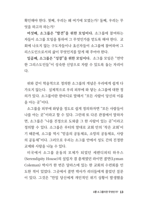 ±³È¸ ¾ÈÀÇ ¶Ç ÇϳªÀÇ ÀÛÀº ±³È¸(Ecclesiola in Ecclesia)ÀÎ ¼Ò±×·ìÀº °Ç°ÇÑ ±³È¸¼ºÀåÀ» ²Þ²Ù´Â ±³È¸¶ó¸é ÇʼöÀûÀ¸·Î ÁýÁßÇØ¾ß ÇÒ »ç¿ªÀÌ´Ù. ƯÈ÷ Àü »çȸÀûÀ¸·Î Äڷγª ÆÒµ¥¹ÍÀ̶ó´Â Àü´ë¹Ì¹®ÀÇ ¾î·Á¿òÀ» °ÞÀ¸¸é¼ ±³È¸ÀÇ È¸º¹°ú Áö¼ÓÀûÀÎ ¼ºÀåÀ» À§ÇØ ¼Ò±×·ì »ç¿ªÀÇ Á߿伺Àº ´õ¿í Áõ´ëµÇ¾ú´Ù. ±×·¸´Ù¸é ¼Ò±×·ìÀ̶õ ¹«¾ùÀΰ¡?