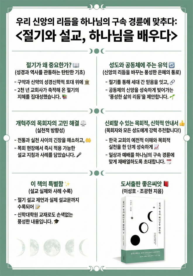 ÀÌ Ã¥Àº Àý±â¿Í ¿¹Àü ÀüÅëÀ» ¼º°æÀû¡¤¿ª»çÀû °üÁ¡¿¡¼ ÀçÁ¶¸íÇÏ·Á´Â ÁøÁöÇÑ ½Ãµµ¸¦ ´ã°í ÀÖÀ¸¸ç, Çѱ¹ ±³È¸ ¸ñȸ ÇöÀå¿¡¼ Áö¼ÓÀûÀ¸·Î Á¦±âµÇ¾î ¿Â Áú¹®µé¿¡ ½ÅÇÐÀû ´äº¯À» ¸ð»öÇÕ´Ï´Ù. µÎ ÀúÀÚ´Â ÀüÅë°ú ½ÇõÀ» ±ÕÇü ÀÖ°Ô °íÂûÇϸç, Àý±â ½ÅÇÐÀÌ Áö´Ñ ¸ñȸÀû °¡´É¼º°ú Çü¼ºÀû Àǹ̸¦ ¸íÈ®ÇÏ°íµµ ü°èÀûÀ¸·Î Á¦½ÃÇÕ´Ï´Ù. ƯÈ÷ Àý±â¸¦ µÑ·¯½Ñ ¿ÀÇØ¸¦ Á¤¹ÐÇÏ°Ô ÇØ¼ÒÇϰí, ¿¹ÀüÀû »çÀ¯ÀÇ ÆøÀ» ³ÐÈ÷´Â µ¥ ±â¿©ÇÏ´Â ´ë¸ñÀÌ µ¸º¸ÀÔ´Ï´Ù. Çѱ¹ ±³È¸ÀÇ ¿¹ÀüÀû ÀÌÇØ¿Í ¸ñȸÀû ½ÇõÀ» ÇÑ ´Ü°è ¼º¼÷ÇÏ°Ô ¸¸µå´Â Áß¿äÇÑ ¹ß°ÉÀ½ÀÌ µÉ °ÍÀÔ´Ï´Ù. ÀÌ ±ÍÇÑ ÀÛ¾÷À» ±â»Û ¸¶À½À¸·Î ÃßõÇÕ´Ï´Ù.