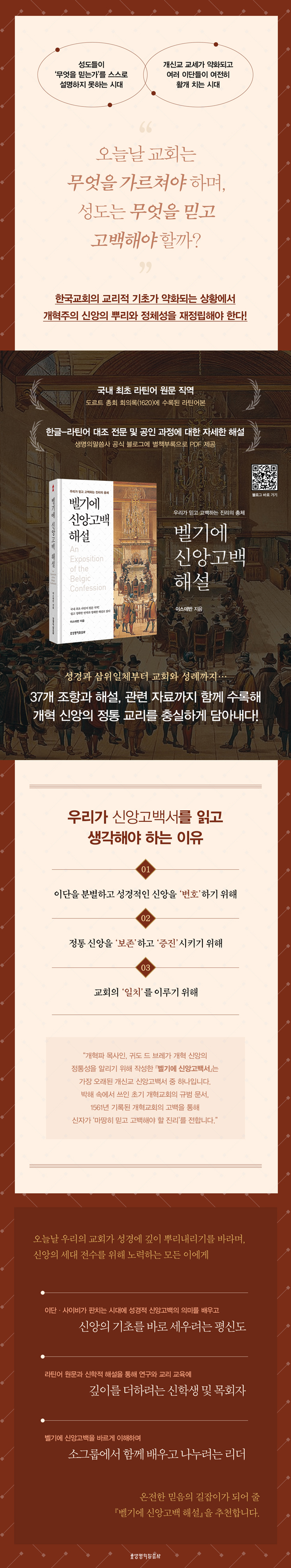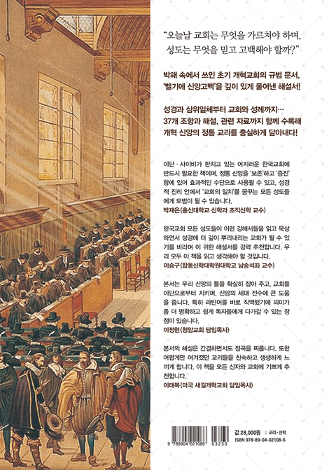ÀÌ Ã¥Àº µµ¸£Æ® ÃÑȸ ȸÀÇ·Ï(1620)¿¡ ¼ö·ÏµÈ ¶óƾ¾îº»À» ±¹³» ÃÖÃÊ·Î Á÷¿ªÇϰí, °í¹é¼¸¦ ±íÀÌ ¹¬»óÇÑ ³»¿ëÀ» °£°áÇϰí Á¤È®ÇÏ°Ô ÇØ¼³Çß´Ù´Â Á¡¿¡¼ Å« ÀÇÀǸ¦ Áö´Ñ´Ù. ¶ÇÇÑ ÀúÀÚ°¡ ¼¶±â´Â ±³È¸¿¡¼ ¡ºº§±â¿¡ ½Å¾Ó°í¹é¼¡»¸¦ °¡Áö°í 35ȸ¿¡ °ÉÃÄ ¼³±³Çß´ø ³»¿ëÀ» ½±°Ô °£Ã߷ȱ⠶§¹®¿¡, ¸ñȸÀÚ»Ó¸¸ ¾Æ´Ï¶ó Æò½Åµµ¿¡°Ôµµ Á¢±Ù¼º°ú ½Çõ¼º ¹× Àû¿ë¼ºÀÌ ¶Ù¾î³ª´Ù´Â °Á¡ÀÌ ÀÖ´Ù. ¡ºº§±â¿¡ ½Å¾Ó°í¹é¼¡» ÃÑ 37Ç× Àü¹®°ú ´õºÒ¾î °¢Á¾ °ü·Ã ÇØ¼³, Áï °øÀÎ °úÁ¤¿¡ ´ëÇÑ ÇØ¼³, ÃÊÆÇ¿¡ ¼ö·ÏµÈ 14Çà½Ã(¼Ò³×Æ®), ÃÊÆÇ¿¡ ¼ö·ÏµÈ ÆíÁö±îÁö ºÎ·ÏÀ¸·Î ½Ç·Á ÀÖ¾î, ³»¿ë»Ó¸¸ ¾Æ´Ï¶ó ź»ý ¹è°æ ¹× ¿ª»çÀû È帧±îÁöµµ Æ÷°ýÀûÀ¸·Î Á¶¸ÁÇÒ ¼ö ÀÖµµ·Ï µ½°í ÀÖ´Ù. Çѱ¹±³È¸ÀÇ ±³¸®Àû ±âÃʰ¡ ¾àȵǴ »óȲ¿¡¼ °³ÇõÁÖÀÇ ½Å¾ÓÀÇ »Ñ¸®¿Í Á¤Ã¼¼ºÀ» ÀçÁ¤¸³Çϱâ À§ÇÑ ±³¸® ÇØ¼³¼°¡ ÇÊ¿äÇϸç, ÀÌ Ã¥ÀÌ ±æÀâÀ̰¡ µÇ¾î ÁÙ °ÍÀÌ´Ù.