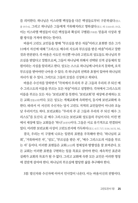 °í¸°µµ ±³È¸´Â ¹®Á¦¸¦ ¸¹ÀÌ °¡Áö°í ÀÖ¾ú´Ù. ¿¹¸¦ µé¾î, ±³ÀÎµé °£ÀÇ ºÐÀï, ¼º, °áÈ¥, ¼Ò¼Û, ¼º¸¸Âù, ¿ì»ó¿¡°Ô ¹ÙÃÄÁø À½½ÄÀ» ¸Ô´Â ¹®Á¦, ±³È¸¿¡¼ ¿©ÀÚÀÇ À§Ä¡, ¼º·ÉÀÇ Àº »ç, À°Ã¼ÀÇ ºÎȰ µîÀÇ ¹®Á¦µéÀÌ ÀÖ¾ú´Ù. ¹Ù¿ïÀº ÀÌ·¯ÇÑ ¹®Á¦µé¿¡ ´äº¯À» ÁÖ±â À§ÇØ ÀÌ ¼½ÅÀ» ±â·ÏÇß´Ù. ±×·±µ¥ °í¸°µµ ±³È¸°¡ Áö´Ï°í ÀÖ¾ú´ø ¹®Á¦µéÀº ±× ±³È¸¿¡¸¸ Á¸ÀçÇÑ °ÍÀÌ ¾Æ´Ï¶ó ¸ðµç ¼¼´ëÀÇ ±³È¸°¡ º¸ÆíÀûÀ¸·Î °Þ´Â ¹®Á¦µéÀ̾ú´Ù. ¿À´Ã³¯ ±³È¸°¡ °Þ°í ÀÖ´Â ¹®Á¦µéÀº °í¸°µµ ±³È¸¿¡ Á¸ÀçÇÑ ¹®Á¦µé°ú Å©°Ô ´Ù¸£Áö ¾Ê´Ù. ±×·¡¼ ³ª´Â °í¸°µµÀü¼¸¦ ±íÀÌ ¿¬±¸ÇÏ´Â °ÍÀÌ ±³È¸¸¦ º¸´Ù °Ç°ÇÏ°í ¹Ù¸£°Ô ¼¼¿ö°¡´Â µ¥ ±â¿©ÇÒ °ÍÀ̶ó°í ¹Ï°Ô µÇ¾ú´Ù. Áï, °í¸°µµ ±³È¸ÀÇ ¿©·¯ ¹®Á¦¿¡ ´ëÇÑ ¹Ù¿ïÀÇ °¡¸£Ä§À» Á¤È®ÇÏ°Ô ÇØ¼®Çؼ Àû½ÇÇÏ°Ô Àû¿ëÇÑ´Ù¸é ±³È¸°¡ ÈξÀ °ß½ÇÇÏ°Ô µÇ¸®¶ó°í »ý°¢Çß´Ù. ±×·± ¸é¿¡¼ ÀÌ Ã¥Àº ¼º°æ ÁÖ¼®¼Áö¸¸ ±³È¸ ¿î¿µ Áöħ¼ ¿ªÇÒµµ ÇÑ´Ù°í º¼ ¼ö ÀÖ´Ù. ÀÌ¿¡ µû¶ó¼ ³»°¡ ¸î ±ºµ¥¿¡ ±â°íÇÑ ¸ñȸ¿Í °ü·ÃµÈ ±ÛÀ» ¡®Æ¯ÁÖ¡¯·Î ±¸¼ºÇÏ¿© ±³È¸ÀÇ ¹æÇ⼺À» Á¦½ÃÇØ º¸¾Ò´Ù.