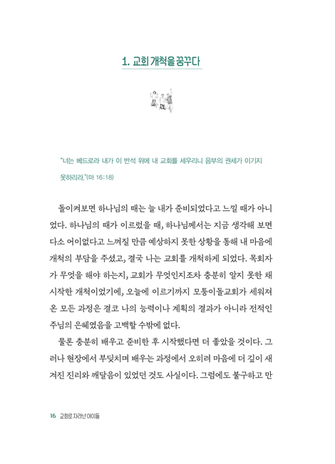 ÇÁ·Ñ·Î±× 9 PART 1. ±³È¸ °³Ã´ Áغñ¿Í °úÁ¤ 1. ±³È¸ °³Ã´À» ²Þ²Ù´Ù 16 2. ±³È¸ °³Ã´ÀÌ ½ÃÀ۵Ǵ٠26 3. ±³È¸ °³Ã´À» ÇÔ²²ÇÑ ¾ÆÀ̵é 38 PART 2. ±³È¸ »ç¿ªÀÇ ½ÇÁ¦ 1. ±³È¸Çб³ »ç¿ªÀ» ½ÃÀÛÇÏ´Ù 52 2. ±³È¸¿¡ ÀçÁ¤À̶õ °ÍÀÌ »ý±â´Ù 79 3. ±³È¸·Î À̲ô´Â ¾ÆÁöÆ® »ç¿ªÀ» ½ÃÀÛÇÏ´Ù 97 4. ±³È¸¸¦ ÇÔ²² ¼¼¿ö°¡´Ù 113 PART 3. °³Ã´±îÁöÀÇ ¿©Á¤ 1. ¼ö·Ãȸ·Î ¼º¼÷ÇØ°¡´Â ¾ÆÀ̵é 166 2. ¼±±³·Î ¼¼¿öÁö´Â ¾ÆÀ̵é 176 3. ħ·Ê·Î ½Å¾Ó°í¹éÇÏ´Â ¾ÆÀ̵é 205 4. ÁÖÀÇ ¸¸Âù, ¸ðÅüÀ̵¹ÀÇ Á¤Ã¼¼º 220 5. ±³È¸ ÀÌÀüÀ» ÅëÇØ ¶Ç ÇÑ ´Ü°è ¼ºÀåÇÏ´Â ¾ÆÀ̵é 223 PART 4. ±³È¸ À§±â¿Í ±Øº¹ 1. ±³È¸¿¡ ã¾Æ¿Â À§±â´Â ¹ÏÀ½ ¼ºÀåÀÇ ±âȸ 232 2. ¸ðÅüÀ̵¹±³È¸ ÁÖº¸´Â ¿ì¸®ÀÇ ¿ª»ç´Ù 250 3. ¸ðÅüÀ̵¹±³È¸ÀÇ ÀçÁ¤Àº ¿ì¸®ÀÇ °í¹éÀÌ´Ù 253 4. ¸ðÅüÀ̵¹±³È¸ ´Ù¼¸ Ű¿öµå´Â ¿ì¸®ÀÇ ¹æÇâ 267 Ã¥ ¼ÓÀ¸·Î