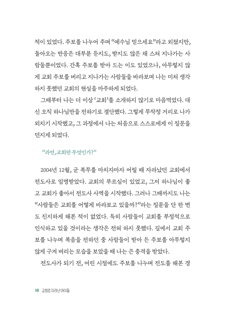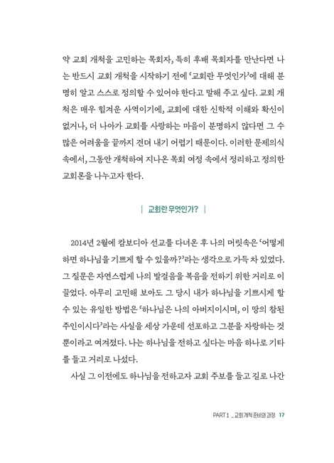 ¹é¼®´ëÇб³¸¦ Á¹¾÷Çϰí, Midwestern Baptist Theological Seminary¿¡¼ ½ÅÇÐ ¼®»ç(M.A.), Çѱ¹ ħ·Ê½ÅÇдëÇб³ ´ëÇпø¿¡¼ ¸ñȸÇÐ ¼®»ç(M.Div.)¿Í ¸ñȸÇÐ ¹Ú»ç(D.Min.)¸¦ Á¹¾÷Çϰí, Southwestern Baptist Theological Seminary¿¡¼ ¸ñȸÇÐ ¹Ú»ç(D.Min.) °úÁ¤À» Á¹¾÷Çß´Ù. ÀúÀڴ üÀ° ±³»ç¸¦ ²Þ²Ù´ø °íµîÇб³ 3Çг⠽ÃÀý, ÀԽø¦ ¾ÕµÎ°í ´çÇÑ ºÎ»óÀ¸·Î ÀλýÀÇ ¹æÇâÀÌ ¸ØÃá µíÇÑ ½Ã°£À» Áö³ª°Ô µÈ´Ù. ±× °úÁ¤¿¡¼ 16¼¼ °Ü¿ï ¼ö·Ãȸ¿¡¼ Çϳª´ÔÀ» ¼¶±â°Ú´Ù°í ¼¿øÇß´ø ±â¾ïÀ» ´Ù½Ã ºÙµé°Ô µÇ¾ú°í, ±× ºÎ¸£½ÉÀ» µû¶ó ³²µéº¸´Ù Á¶±Ý ´ÊÀº 24¼¼¿¡ ´ëÇп¡ ÀÔÇÐÇϸç Àüµµ»ç·Î »ç¿ªÀÇ ±æÀ» ½ÃÀÛÇÏ¿´´Ù. ¡°Çϳª´ÔÀ» ±â»Ú½Ã°Ô ÇÏ´Â ÀÏÀº ¹«¾ùÀΰ¡¡±¶ó´Â Áú¹®À» ǰ°í ³ë¹æ Àüµµ¸¦ ½ÃÀÛÇϸç, ±³È¸°¡ ¾Æ´Ñ ¿¹¼ö ±×¸®½ºµµ¸¦ ÀüÇÏ¿´´Ù. ¾ÆÀ̵éÀÌ Æò°¡¹ÞÁö ¾Ê°í, ¸¶À½²¯ ³î¸ç, Æí¾ÈÈ÷ ¸Ó¹° ¼ö ÀÖ´Â ±³È¸¸¦ ²Þ²Ù¸ç 2014³â 11¿ù, Àüµµ»ç ½ÅºÐÀ¸·Î °íµîÇлý ¿©¼¸ ¸í°ú ÇÔ²² õ¾È¿¡¼ ¸ðÅüÀ̵¹±³È¸¸¦ °³Ã´ÇÏ¿´´Ù. °³Ã´ ÀÌÈÄ ±³È¸´Â Æò±Õ ¿¬·É 16.5¼¼¶ó´Â Çѱ¹ ±³È¸ ¾È¿¡¼µµ º¸±â µå¹® °¡Àå ÀþÀº °øµ¿Ã¼·Î ¼ºÀåÇÏ¿´À¸¸ç, ¼¼»ó¿¡¼ °¡Àå ÀþÀº ±³È¸·Î CBS ¡®»õ·Ó°Ô ÇϼҼ¡¯, CTS ¡®³»°¡ ¸ÅÀÏ ±â»Ú°Ô¡¯, GOODTV ¡®Çϳª´Ô äñ »ç¶÷¡¯¿¡ ¼Ò°³µÇ¾ú´Ù. ÀúÀÚ´Â ±³È¸¿Í °¡Á¤À» Áö۱â À§ÇØ ÀÌÁßÁ÷À» °¨´çÇϸç, Çϳª´Ô²²¼ ÁֽŠºñÀü°ú ÃʽÉÀ» ºÙµé°í »ç¿ªÀ» ÀÌ¾î ¿Ô´Ù. °³Ã´ 11³âÀÌ Áö³ ÇöÀç, ±³È¸°¡ ÀÚ¸³ÇÏ¿© ÀÌÁßÁ÷À» ±×¸¸µÎ°í ¡®»ç¶÷À» ¸ðÀ¸´Â ±³È¸°¡ ¾Æ´Ñ, »ç¶÷À» »ì¸®´Â ±³È¸¡¯¶ó´Â ±³È¸ ºñÀüÀ» À§ÇØ ¸ñȸ¿¡¸¸ Àü³äÇϰí ÀÖÀ¸¸ç, ¾î¸®±â¸¸ Çß´ø ¼ºµµµéÀº »îÀÇ ÀÚ¸®¿¡¼ ¼ºÀåÇÏ¿© ±³È¸ÀÇ Æò±Õ ¿¬·ÉÀº 23¼¼°¡ µÇ¾úÁö¸¸, ¿©ÀüÈ÷ ¿Â ¼ºµµ°¡ ÇÔ²² ±³È¸¸¦ ¼¼¿ö °¡°í ÀÖ´Ù. °¡Àå µçµçÇÑ µ¿¿ªÀÚÀÎ À¯Çý¹Ì »ç¸ð¿Í µþ Çã¾ÆÀÎ, ¾Æµé ÇãÀ±°ú ÇÔ²² Çϳª´Ô ³ª¶ó¸¦ ²Þ²Ù´Â °¡Á¤À» ÀÌ·ç°í ÀÖ´Ù. ÃßõÀÇ ±Û