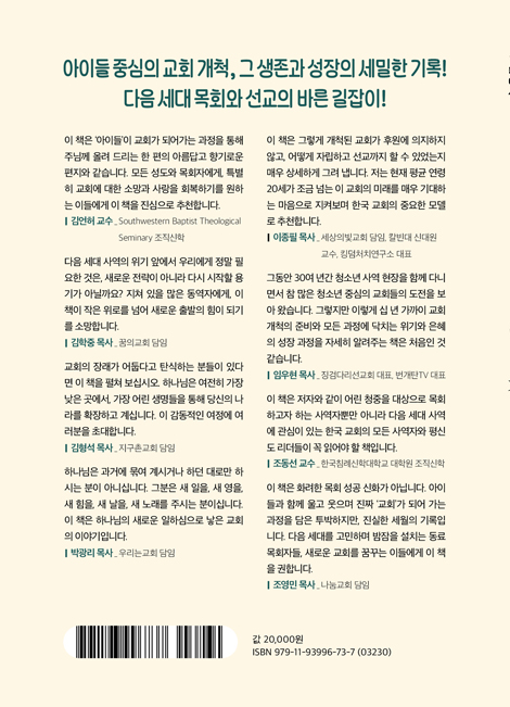 * ±³È¸ °³Ã´ ¸É¹ö Æò±Õ ¿¬·É 16.5¼¼ ±× ºÒ°¡´ÉÀÇ »ýÁ¸±â! * ¾ÆÀ̵é Áß½ÉÀÇ ±³È¸ °³Ã´, ±× ź»ý°ú ¼ºÀåÀÇ ¼¼¹ÐÇÑ ±â·Ï! * ´ÙÀ½ ¼¼´ë ¸ñȸ¿Í ¼±±³ÀÇ ¹Ù¸¥ ±æÀâÀÌ! [ÃâÆÇ»ç Ã¥ ¼Ò°³] ÀÌ Ã¥Àº ±×·¸°Ô °³Ã´µÈ ±³È¸°¡ ÈÄ¿ø¿¡ ÀÇÁöÇÏÁö ¾Ê°í, ¾î¶»°Ô ÀÚ¸³ÇÏ°í ¼±±³±îÁö ÇÒ ¼ö ÀÖ¾ú´ÂÁö ¸Å¿ì »ó¼¼ÇÏ°Ô ±×·Á ³À´Ï´Ù. Å« ±³È¸¿¡¼ ºÐ¸³ °³Ã´ÇÒ ¼ö ¾ø¾îµµ, ÀÌ Ã¥¸¸ µû¶ó°£´Ù¸é ÁÂÀýÇÒ °Í ¾ø½À´Ï´Ù. °³Ã´ ¸â¹ö°¡ û¼Ò³â°ú û³âµé¹Û¿¡ ¾ø¾îµµ ÀÌ Ã¥ÀÌ Á¦½ÃÇÏ´Â ´ë·Î ºÎ¸£½É µû¶ó ¸ñ¼û °É ¼ö ÀÖ´Ù¸é ÁøÁ¤À¸·Î ¹Ì·¡¿¡ ÇÊ¿äÇÑ ±³È¸°¡ ¼¼¿öÁö´Â ÀºÇý¸¦ °æÇèÇÒ °ÍÀÔ´Ï´Ù. ÇöÀç Æò±Õ ¿¬·É 20¼¼°¡ Á¶±Ý ³Ñ´Â ÀÌ ±³È¸ÀÇ ¹Ì·¡¸¦ ¸Å¿ì ±â´ëÇÏ´Â ¸¶À½À¸·Î ÁöÄѺ¸¸ç Çѱ¹ ±³È¸ÀÇ Áß¿äÇÑ ¸ðµ¨·Î ÃßõÇÕ´Ï´Ù. ´ÙÀ½ ¼¼´ë¸¦ °í¹ÎÇÏ¸ç ¹ãÀáÀ» ¼³Ä¡´Â µ¿·á ¸ñȸÀÚµé, »õ·Î¿î ±³È¸¸¦ ²Þ²Ù´Â À̵鿡°Ô ÀÌ Ã¥À» ±ÇÇÕ´Ï´Ù. [ÀúÀÚ¼¹®] ÀÌ Ã¥ÀÇ ¸ñÀûÀº, ¾î¸°ÀÌ¿Í ÇÔ²² °³Ã´ÇÏ¿© ÀÚ¸³ÇÏ°Ô µÈ ¸ðÅüÀ̵¹±³È¸ÀÇ ¼ºÀå »ç·Ê¸¦ ÅëÇÏ¿©, °è¼ÓÇÏ¿© ±³È¸ °³Ã´¿¡ Èû½á¾ß ÇÒ ´çÀ§¼º°ú ´õºÒ¾î ±³È¸ ¾È¿¡¼ ¾î¸°À̸¦ ¼ºÀÎ ½ÅÀÚ¿Í ¸¶Âù°¡Áö·Î ¿ÂÀüÇÑ ÀΰÝüÀÌÀÚ Áß¿äÇÑ »ç¿ªÀÇ ´ë»óÀ¸·Î ¿©°Ü¾ß ÇÒ Çʿ伺, ³ª¾Æ°¡ ¾î¸°À̸¦ »ç¿ªÀÇ ÁÖü·Î Á¸ÁßÇØ¾ß ÇÒ ´çÀ§¼ºÀ» Çѱ¹±³È¸¿¡ Á¦½ÃÇÏ´Â µ¥ ÀÖ´Ù. ¸¹Àº ±³È¸¿¡¼ ¾î¸°ÀÌ »ç¿ªÀÌ ¹«³ÊÁö°í ÀÖÀ¸¸ç, ½ÉÁö¾î ÀϺΠ±³È¸¿¡¼´Â ¾Æ¿¹ ¾î¸°ÀÌ ºÎ¼°¡ ÆóÁöµÇ¾ú´Ù´Â À̾߱⸦ ¾î·ÆÁö ¾Ê°Ô µè°í º¸°Ô µÈ´Ù. ¾î¸°ÀÌ »ç¿ªÀÌ ¹«³ÊÁö°í, ±³È¸¿¡¼ ÀþÀº ¼¼´ë°¡ ±Þ°ÝÈ÷ »ç¶óÁö¸ç, ±× °á°ú ±³È¸°¡ Ãʰí·ÉÈµÇ¾î °£´Ù´Â ź½Ä°ú µÎ·Á¿òÀÌ Á¡Á¡ ´õ Çѱ¹±³È¸¸¦ ¾îµÓ°Ô Çϰí ÀÖ´Ù. ÇÊÀÚ´Â ÀÌ Ã¥À» ÅëÇØ, ¾î¸°ÀÌ ºÎ¼ÀÇ °¨¼Ò³ª ÆóÁö¶ó´Â Çö»óÀÇ Ç¥¸éÀû ÀÌÀ¯´Â ¸ñȸÀÚ¸¦ Æ÷ÇÔÇÑ ¾î¸¥µéÀÌ ¾î¸°ÀÌÀÇ µ¶Æ¯¼ºÀ» ÃæºÐÈ÷ ÀÌÇØÇÏÁö ¸øÇÑ µ¥ ÀÖÀ¸¸ç, ±×º¸´Ù ´õ ±Ùº»ÀûÀÎ ÀÌÀ¯´Â ±³È¸ ¾È¿¡¼ ¾î¸°À̰¡ ¾î¸¥°ú ºñ±³ÇÏ¿© ¿ÂÀüÇÑ ÀΰÝüÀÌÀÚ »ç¿ªÀÇ ´ë»óÀ¸·Î ÃæºÐÈ÷ Á¸Áß¹ÞÁö ¸øÇØ ¿Ô±â ¶§¹®À̶ó°í Á¦½ÃÇϰíÀÚ ÇÑ´Ù. ¸¸¾à ³ªÀÇ Áø´ÜÀÌ ¿Ç°í ¸ðÅüÀ̵¹±³È¸ÀÇ °æÇèÀÌ ½ÇÁ¦ÀûÀÎ µµ¿òÀ» ÁÙ ¼ö ÀÖ´Ù¸é, ´ÙÀ½¼¼´ë°¡ Á¡Á¡ °¨¼ÒÇϰí ÀÖ´Â Çѱ¹±³È¸ÀÇ ¹®Á¦¸¦ ÇØ°áÇÏ´Â µ¥ ÇϳªÀÇ ´ë¾ÈÀÌ µÉ ¼ö ÀÖÀ» °ÍÀÌ´Ù. ÀÌ Ã¥Àº ´ÙÀ½¼¼´ë¿Í ÇÔ²² ±³È¸¸¦ °³Ã´ÇÏ¿© ÀÚ¸³¿¡ À̸¥ ¸ðÅüÀ̵¹±³È¸ÀÇ »ç·Ê¸¦ Áß½ÉÀ¸·Î, ´ÙÀ½ ¼¼´ë±³È¸ °³Ã´°ú ȸº¹À» À§ÇÑ ½ÇÁ¦ÀûÀÎ »ç¿ª ¹æ¹ýÀ» Á¦¾ÈÇϰíÀÚ ÇÑ´Ù. ¸ðÅüÀ̵¹±³È¸ÀÇ »ç·Ê°¡ ¸ðµç ±³È¸ °³Ã´ÀÇ Á¤´äÀÌ µÉ ¼ö´Â ¾ø°ÚÁö¸¸, ¾ÆÀ̵éÀ» ÅëÇØ¼µµ ±³È¸°¡ ¼ºÀåÇÒ ¼ö ÀÖÀ½À» º¸¿©ÁÖ¸ç, ±³È¸ÀÇ ÁøÁ¤ÇÑ ÁÖÀÎÀÌ ¿¹¼ö ±×¸®½ºµµÀ̽ÉÀ» ´Ù½Ã È®ÀÎÇÏ°Ô ÇÑ´Ù. ±³¼¼°¡ °¨¼ÒÇÏ´Â Áß¿¡µµ ¸¹Àº ±³È¸°¡ °³Ã´µÇ°í Àִ ȥ¶õÀÇ ½Ã´ë ¼Ó¿¡¼ ¸ðÅüÀ̵¹±³È¸ÀÇ °æÇèÀÌ Âü°íÇÒ ¸¸ÇÑ »ç·Ê°¡ µÇ±â¸¦ ¼Ò¸ÁÇÑ´Ù. ³ª´Â ´Ã ¸Ó¸®º¸´Ù ¸öÀÌ ¸ÕÀú ¿òÁ÷ÀÌ´Â »ç¶÷À̾ú´Ù. ±×·¸°Ô °Ì ¾øÀÌ ½ÃÀÛÇØ °É¾î¿Â Áö³ 10³âÀÇ ¿©Á¤ ¼Ó¿¡¼ ¸ðÅüÀ̵¹±³È¸¿¡´Â ÀÛÀº ÀÏ Çϳª±îÁöµµ »ç¶÷ÀÇ ´É·ÂÀÌ ¾Æ´Ñ Çϳª´ÔÀÇ ÀºÇý¿Í ÀεµÇϽÉÀÌ ÀÖ¾úÀ½ÀÌ ºÐ¸íÇÏ´Ù. Çϳª´ÔÀ» ±â»Ú½Ã°Ô ÇÒ ¹æ¹ýÀ» °í¹ÎÇÏ¸ç º¹À½À» ¿ÜÃÆ´ø ½Ã°£, ´Ù¼¸ Æò ³²ÁþÇÑ °ø°£À» ¾ò¾î ¿¹¹èÇß´ø ½Ã°£, ºñ·Ï ¾ÆÀ̵éÀ̾úÁö¸¸ ±× ÀÛÀº °÷À» ±³È¸·Î ¿©±â°í ¿¹¹èÇϸç ÇÔ²² ¼ºÀåÇß´ø ½Ã°£µéÀº ¸ðÅüÀ̵¹±³È¸ÀÇ »ç¿ªÀÌ °áÄÚ »ç¶÷ÀÇ ÈûÀ¸·Î¸¸ ÀÌ·ç¾îÁø °ÍÀÌ ¾Æ´ÔÀ» Áõ¸íÇØ ÁØ´Ù. ±×·³¿¡µµ Çϳª´Ô²²¼´Â »ç¶÷µéÀ» ÅëÇØ ÀÏÇϼ̰í, ¸ðÅüÀ̵¹±³È¸°¡ ¾î·Á¿ï ¶§¸¶´Ù Çϳª´ÔÀÇ »ç¶÷µéÀ» º¸³» Áּż À§±â¸¦ ±Øº¹ÇÏ°Ô Çϼ̴Ù. °³Ã´±³È¸·Î¼ ÀçÁ¤ÀÇ ¾î·Á¿òÀÌ ÀÚÁÖ ÀÖ¾úÀ¸³ª Çϳª´Ô²²¼´Â ´Ã ÇÊ¿äÇÑ ÀçÁ¤À» ä¿ö Áּ̰í, ¿¹»óÄ¡ ¸øÇÑ ¹æ¹ýÀ¸·Î ±³È¸¸¦ ÀεµÇϼ̴Ù. ±³È¸°¡ ¹®À» ´ÝÀ» À§±â¿¡ óÇÑ Àûµµ ÀÖ°í, ¸¹Àº ¼ºµµ°¡ ÇѲ¨¹ø¿¡ ¶°³ª´Â Àϵµ ÀÖ¾úÀ¸¸ç, ½ÉÁö¾î ÀÌ´ÜÀ¸·Î ¸ô¸®´Â ÀϱîÁö °Þ¾úÁö¸¸, Çϳª´Ô²²¼´Â ±×¶§¸¶´Ù »õ·Î¿î »ç¶÷µéÀ» º¸³» Áּż ±³È¸¸¦ ȸº¹½ÃŰ°í ¼ºÀåÇÏ°Ô ÇϽô ³î¶ó¿î ÀϵéÀ» Çϼ̴Ù. ¸ðÅüÀ̵¹±³È¸ÀÇ Ç¥¾î´Â ¡°»ç¶÷À» ¸ðÀ¸´Â ±³È¸°¡ ¾Æ´Ï¶ó, »ç¶÷À» »ì¸®´Â ±³È¸¡±ÀÌ´Ù. ¸¹Àº »ç¶÷ÀÌ ÇÔ²² ±³È¸¸¦ ¼¼¿ö °¡¸é ÁÁ°ÚÁö¸¸, ¸ðÅüÀ̵¹±³È¸´Â ÇÑ »ç¶÷ÀÌ¶óµµ ÁÁÀ¸´Ï ¿¹¼ö´ÔÀ» ÁøÁ¤À¸·