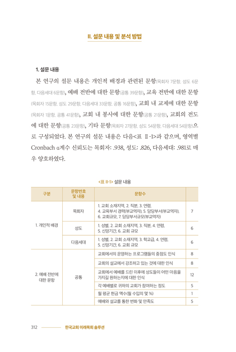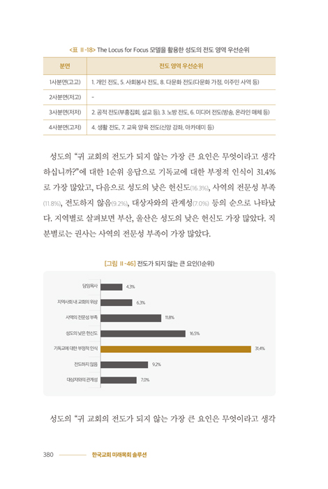 ±Þº¯ÇÏ´Â ½Ã´ëÀÇ ÇѺ¹ÆÇ¿¡¼ Çѱ¹±³È¸´Â ±× ¾î´À ¶§º¸´Ù ³ôÀº ÆÄµµ¿Í °Å¼¾ µµÀü ¾Õ¿¡ ¼ ÀÖ½À´Ï´Ù. »çȸ Àü¹ÝÀÇ °¡¼ÓÈµÈ º¯È ¼Ó¿¡¼ ±³È¸´Â ÀÌÁ¦ ¼öµ¿ÀûÀÎ ´ëÀÀÀ» ³Ñ¾î¼± ´Éµ¿ÀûÀÎ °úÁ¦¸¦ ¾È°í ÀÖ½À´Ï´Ù. ÀÌ·¯ÇÑ À§±â ¼Ó¿¡¼ º»Áú·ÎÀÇ È¸º¹À» ¿ÜÄ¡¸ç, Çѱ¹±³È¸°¡ ³ª¾Æ°¡¾ß ÇÒ ¹æÇâÀ» Á¦½ÃÇÏ´Â ½Å°£ ¡ºÇѱ¹±³È¸ ¹Ì·¡ ¸ñȸ ¼Ö·ç¼Ç¡»ÀÌ Ãâ°£µÇ¾ú½À´Ï´Ù. ÀÌ Ã¥Àº Çѱ¹±³È¸°¡ ¹Ýµå½Ã Á¡°ËÇØ¾ß ÇÒ ¿©¼¸ °¡Áö ÇÙ½É ¿µ¿ªÀÎ ¡®¸ñȸ¡¤¿¹¹è¡¤±³À°¡¤ºÀ»ç¡¤±³Á¦¡¤Àüµµ¡¯¸¦ Áß½ÉÀ¸·Î ¹Ì·¡ ¸ñȸÀÇ ´ë¾ÈÀ» ¸ð»öÇÕ´Ï´Ù. °¢ ºÐ¾ß¿¡¼ ½Å·Ú¹Þ´Â Çѱ¹±³È¸ÀÇ ¸àÅäµé°ú ½Çõ½ÅÇÐ Àü¹®°¡µéÀÌ ÁýÇÊÁøÀ¸·Î Âü¿©ÇÏ¿© ÇöÀå¿¡ ´ëÇÑ ±íÀº ÀÌÇØ¿Í ½ÅÇÐÀû ÅëÂûÀ» ´ã¾Æ³Â½À´Ï´Ù. 12¸íÀÇ ÀúÀÚµéÀº º¯ÈÀÇ ¼Ò¿ëµ¹ÀÌ ¼Ó¿¡¼µµ Èçµé¸®Áö ¾Ê´Â ¸ñȸÀÇ º»ÁúÀ» ¼¼¿ì°í, ±¸Ã¼ÀûÀÎ ½Çõ Àü·«À» Á¦¾ÈÇÕ´Ï´Ù. ƯÈ÷ ÀÌ Ã¥ÀÇ °¡Àå Å« Â÷º°Á¡Àº ´Ü¼øÇÑ ÀÌ·ÐÀû Á¦¾È¿¡ ±×Ä¡Áö ¾Ê°í, ¸ñȸÀÚ¡¤¼ºµµ¡¤´ÙÀ½¼¼´ë¸¦ ´ë»óÀ¸·Î ½Ç½ÃÇÑ Àü±¹ ´ÜÀ§ÀÇ ´ë±Ô¸ð ½ÇÁõÁ¶»ç µ¥ÀÌÅ͸¦ ¼ö·ÏÇß´Ù´Â Á¡ÀÔ´Ï´Ù. ¿¹¹è, ±³À°, ºÀ»ç, ±³Á¦, Àüµµ¿¡ ´ëÇÑ Çѱ¹±³È¸ ±¸¼º¿øµéÀÇ ½ÇÁ¦ Àνİú ÇöȲÀ» °´°üÀûÀÎ µ¥ÀÌÅÍ·Î ºÐ¼®ÇÏ¿©, ÇöÀåÀÇ ¸ñ¼Ò¸®¿¡ ±Ù°ÅÇÑ ÀÔüÀûÀÎ ¹Ì·¡ Àü·«À» ¼ö¸³Çϵµ·Ï µ½½À´Ï´Ù. ´ÙÀ½¼¼´ë¸¦ À§ÇÑ ±³È¸±³À°»Ó¸¸ ¾Æ´Ï¶ó Àü ¼¼´ë¸¦ ¾Æ¿ì¸£´Â ÅëÇÕÀû ºñÀüÀ» ´ã°í ÀÖ´Â ÀÌ Ã¥Àº À§±â ¼Ó¿¡¼ ±æÀ» ã´Â ¸ñȸÀÚ¿Í Æò½Åµµ ¸®´õµé¿¡°Ô ¹Ì·¡¸¦ ÇâÇÑ È®½ÇÇÑ ³ªÄ§¹ÝÀÌ µÇ¾îÁÙ °ÍÀÔ´Ï´Ù.
