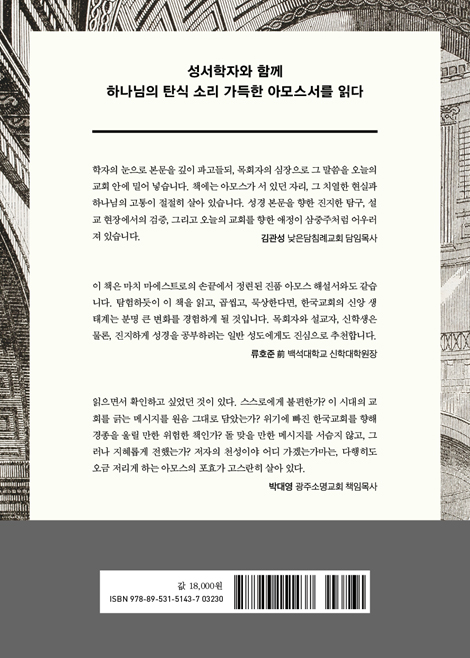 ÀúÀÚ´Â ¿ª»çÀû¡¤¹®ÇÐÀû¡¤½ÅÇÐÀûÀ¸·Î ±íÀÌ ÀÖ´Â Á¤ÅëÀû ÇØ¼®À» µû¸£¸é¼­µµ, ¾Æ¸ð½º¼­ º»¹®À» ¿À´Ã ¿ì¸® »î¿¡ »ì¾Æ ¿ª»çÇϽô Çϳª´ÔÀÇ ¸»¾¸À¸·Î ÀÐ¾î ³À´Ï´Ù. ÀÌ Ã¥Àº ¸¶Ä¡ ¸¶¿¡½ºÆ®·ÎÀÇ ¼Õ³¡¿¡¼­ Á¤·ÃµÈ ÁøÇ° ¾Æ¸ð½º ÇØ¼³¼­¿Íµµ °°½À´Ï´Ù. ŽÇèÇϵíÀÌ ÀÌ Ã¥À» Àаí, °ö¾Ã°í, ¹¬»óÇÑ´Ù¸é, Çѱ¹±³È¸ÀÇ ½Å¾Ó »ýŰè´Â ºÐ¸í Å« º¯È­¸¦ °æÇèÇÏ°Ô µÉ °ÍÀÔ´Ï´Ù. ¸ñȸÀÚ¿Í ¼³±³ÀÚ, ½ÅÇлýÀº ¹°·Ð, ÁøÁöÇÏ°Ô ¼º°æÀ» °øºÎÇÏ·Á´Â ÀÏ¹Ý ¼ºµµ¿¡°Ôµµ Áø½ÉÀ¸·Î ÃßõÇÕ´Ï´Ù.