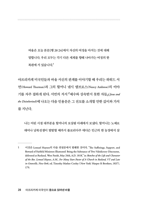 ¡º¾ÆÇÁ¸®Ä«°è ¹Ì±¹ÀÎÀÌ ¸öÀ¸·Î Àо ¹Ù¿ï¡»Àº ´Ü¼øÈ÷ °ú°ÅÀÇ ÇÑ Àå¸éÀ» ±â·ÏÇϴ åÀÌ ¾Æ´Ï´Ù. ¼º°æ ¼ö¿ë»çÀÇ »õ·Î¿î ÀåÀ» ¿­¸ç, ¾ÆÇÁ¸®Ä«°è ¹Ì±¹ÀÎÀÇ ½Å¾Ó°ú Áö¼ºÀÌ ³²±ä À¯»êÀ» ¿À´Ã µ¶ÀÚ ¾Õ¿¡ µÇ»ì¸°´Ù. ÀúÀÚ´Â ¿ì¸®¿¡°Ô ¹¯´Â´Ù. ¾ï¾Ð°ú Â÷º°ÀÇ ½Ã´ë¿¡ ¿ì¸®´Â ¾î¶»°Ô ¼º°æÀ» ÀÐÀ» °ÍÀΰ¡?