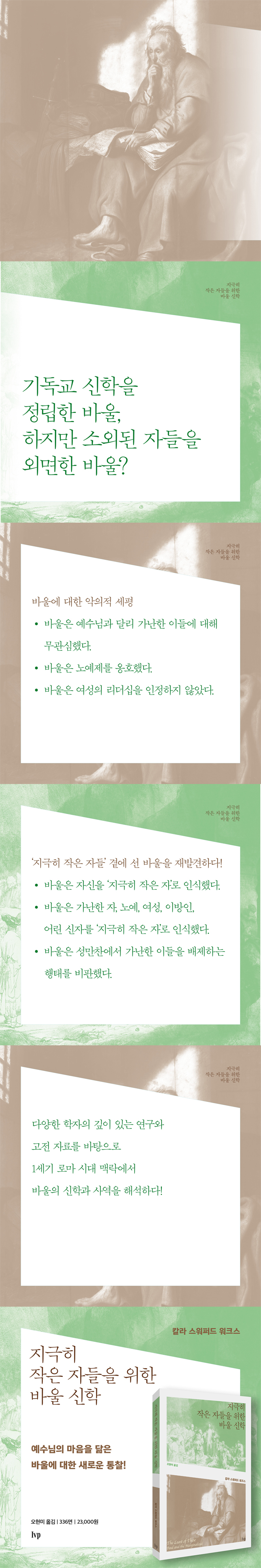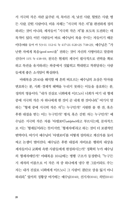 °¡³Çϰí Èû¾ø´Â »ç¶÷µé¿¡°Ô ±íÀº °ü½ÉÀ» º¸¿´´ø ¿¹¼ö´Ô°ú ´Þ¸®, ¹Ù¿ïÀº ¼Ò¿ÜµÈ À̵鿡°Ô ±×´ÙÁö °ü½ÉÀÌ ¾ø¾ú´ø Àι°·Î ÀÎ½ÄµÇ¾î ¿Ô´Ù. ÀÌ Ã¥Àº ¹Ù¿ïÀÌ »ç¿ªÇÑ ±³È¸ ³»ÀÇ ºó°ï ¹®Á¦¿Í °¡³ÇÑ À̵鿡 ´ëÇÑ °øµ¿Ã¼ÀÇ Åµµ, ³ë¿¹¿Í ÇØ¹æ ³ë¿¹ÀÇ °øµ¿Ã¼ Âü¿© ¹®Á¦, ¹Ù¿ïÀÇ ¼±±³¿¡¼ ¿©¼ºÀÇ ¿ªÇÒ µîÀ» »ìÆìº½À¸·Î½á ¹Ù¿ïÀÌ ¼Ò¿ÜµÈ »ç¶÷µéÀÇ Á¸À縦 ±íÀÌ ÀνÄÇØ ¿ÔÀ½À» ¼³µæ·Â ÀÖ°Ô ÀÔÁõÇÑ´Ù. ÀúÀÚ´Â ¡®Áö±ØÈ÷ ÀÛÀº ÀÚ¡¯¶ó´Â ÀºÀ¯¸¦ ÅëÇØ ¼Ò¿ÜµÈ À̵éÀÌ ¹Ù¿ï ½ÅÇп¡¼ Áö´Ï´Â Á߿伺À» Ž»öÇϸç, ±íÀÌ ÀÖ´Â ¼ö¸¹Àº ¿¬±¸¸¦ ¹ÙÅÁÀ¸·Î ¹Ù¿ïÀÇ »ç¿ª°ú ¸Þ½ÃÁö°¡ ¿¹¼ö´ÔÀÇ ¹æÇâ°ú ÀÏÄ¡ÇßÀ½À» ºÎ°¢ÇÑ´Ù. À̸¦ ÅëÇØ ¹Ù¿ïÀÌ Ãß»óÀû »ç»ó°¡°¡ ¾Æ´Ï¶ó ¿¬¹Î°ú Ä£Àý, ¹è·ÁÀÇ »î ¼Ó¿¡¼ º¹À½À» ÀüÇÑ ½ÇõÀû ½ÅÇÐÀÚ¿´À½À» º¸¿© ÁØ´Ù.