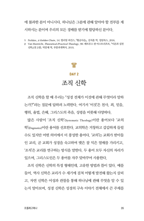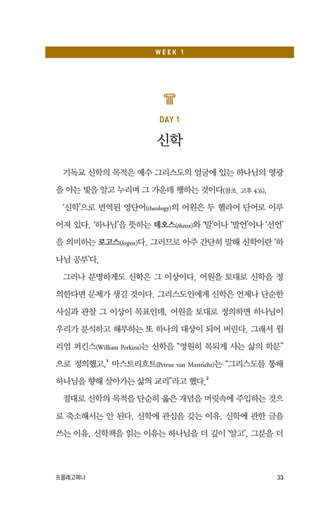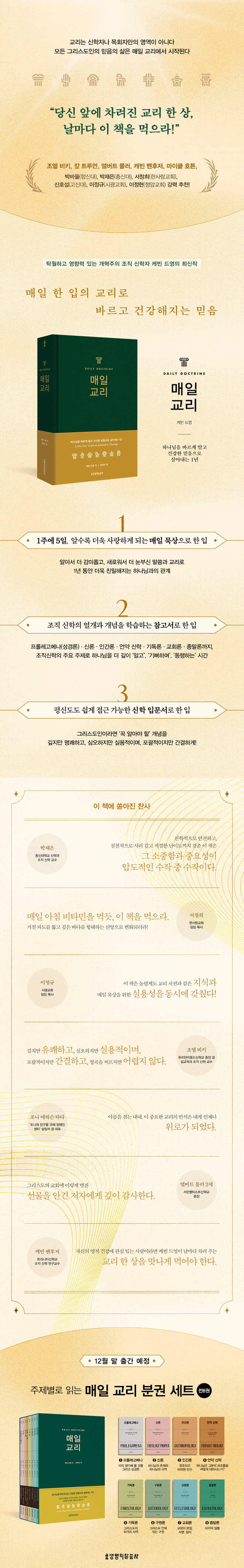 õ±¹¿¡ µé¾î°¡´Â µ¥ ÇÊ¿äÇÑ ÃÖ¼ÒÇÑÀÇ Áö½ÄÀÌ ¿ì¸®ÀÇ ¸ñÀûÀ̾´Â ¾È µÈ´Ù. ¿ì¸®´Â Çϳª´ÔÀÇ ¿µ±¤ÀÇ ¾ð´öÀ» º¸´Â µ¥¼­ Çϳª´ÔÀÇ ¿µ±¤ÀÇ »êÀ» º¸´Â µ¥·Î ¿Å°Ü °¡¾ß ÇÑ´Ù. ¿ì¸®´Â ÀÌ·± ÀÌÀ¯·Î ¹è¿ì¸ç, ÀÌ·± ÀÌÀ¯·Î ±³¸®°¡ ÇÊ¿äÇÏ´Ù. <¸ÅÀÏ ±³¸®>´Â ÇÁ·Ñ·¹°í¸Þ³ª(¼º°æ·Ð), ½Å·Ð, Àΰ£·Ð, ¾ð¾à ½ÅÇÐ, ±âµ¶·Ð, ±³È¸·Ð, Á¾¸»·Ð±îÁö Á¶Á÷ ½ÅÇÐÀÇ ÀüÅëÀûÀÎ ÁÖ¿ä ÁÖÁ¦·Î ±¸¼ºµÇ¾ú´Ù. Çϳª´ÔÀÇ ¿µ±¤ÀÇ »êÀ¸·Î ÀÌÁ¦ ¸· Ãâ¹ßÇÑ ±×¸®½ºµµÀο¡°Ô ¹Ï°í ÀÇÁöÇÒ Áöµµ°¡ µÇ¾î ÁÙ °ÍÀÌ´Ù.