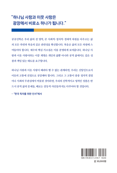 »ý¸í°øÇÐÀÇ µµÀü°ú ÀÌÁֹΠ¹®Á¦ µî Çö´ë »çȸÀÇ °¡Àå ¹Î°¨ÇÑ °¥µî »ç¾Èµé±îÁö ¾Æ¿ì¸£´Â ÀúÀÚÀÇ ³íÀÇ´Â, Çϳª´ÔÀÇ ÅëÄ¡°¡ »îÀÇ ¸ðµç ¿µ¿ª¿¡ ½º¸çµé¾î ÀÖÀ½À» º¸¿©ÁÖ´Â °·ÂÇÑ Áõ°Å°¡ µÈ´Ù. º¹À½ÀÇ °ø°ø¼ºÀ» ȸº¹ÇÔÀ¸·Î½á ±³È¸°¡ ¼¼»óÀÇ °íÅë¿¡ Áø½ÉÀ¸·Î °ø°¨Çϰí Ã¥ÀÓ ÀÖ°Ô ÇൿÇÒ ¶§ ºñ·Î¼Ò ÁøÁ¤ÇÑ Á¾±³Àû Á¸Àç ÀÌÀ¯¸¦ Áõ¸íÇÒ ¼ö ÀÖ´Ù´Â ¾öÁßÇÑ ¸Þ½ÃÁö¸¦ ÀüÇÏ´Â ÀÌ Ã¥Àº ½Å¾ÓÀÇ »ç»çȸ¦ ³Ñ¾î Çѱ¹ ±³È¸¿Í »çȸ°¡ Á÷¸éÇÑ º¹ÀâÇÑ °øÀû Çö¾Èµé¿¡ ´ëÇØ¼µµ ½ÅÇÐÀÌ ¾î¶² ¾ð¾î·Î ¼ÒÅëÇÏ°í ±â¿©ÇØ¾ß ÇÏ´ÂÁö¿¡ ´ëÇÑ ±íÀº ÅëÂûÀ» Á¦°øÇÑ´Ù.