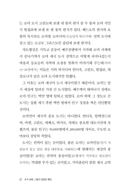 ÀÌ Ã¥Àº ´Ü¼øÈ÷ ·Î¸¶ ½Ã´ë Ãʱ⠱⵶±³ÀÇ Çü¼º¿¡ °üÇØ ¼³¸íÇϴ åÀÌ ¾Æ´Ï´Ù. ÀÌ Ã¥Àº ¿ª»ç¿Í °í°íÇÐ, ¹®ÇåÇÐÀÌ ¸¸³ª´Â ÀÚ¸®¿¡¼ ·Î¸¶ Á¦±¹ÀÇ È·ÁÇÔ°ú ºó°ï, È®Àå°ú °¥µîÀÇ ÇѺ¹ÆÇ¿¡¼ ÅÂ¾î³ Ãʱ⠱⵶±³ÀÇ ¹è°æÀ» ½±°Ô ÇØ¼³ÇÏ´Â ¾È³»¼ÀÌ´Ù. ÀÌ Ã¥ÀÌ ¼Ò°³ÇÏ´Â ÆûÆäÀÌ, °í¸°µµ, ¿¡º£¼Ò °°Àº °í´ë µµ½ÃÀÇ À¯¹°µé°ú ¹Ù¿ï ¼½Å, »çµµÇàÀü, ±×¸®°í °í´ë ·Î¸¶ÀÇ »ç·áµéÀº ´ç½Ã »ç¶÷µéÀÇ ÀÏ»óÀû »îÀÇ ¹è°æ°ú ½Å¾ÓÀÇ ¹«´ë¸¦ »ý»ýÈ÷ º¹¿øÇÑ´Ù. µ¶ÀÚµéÀº ÀÌ Ã¥À» ÅëÇØ µµ½Ã, ÁÖ°Å, À½½Ä°ú ¹®È, »çȸ À§°èÁú¼, °¡Á¤°ú °øµ¿Ã¼, °æÁ¦, ¿¹¼ú, ±×¸®°í Á¾±³¿Í °ü·ÃµÈ °í´ëÀεéÀÇ ¼û°á°ú ÀÏ»óÀÇ Á¤Ã븦 °¡±îÀÌ ´À³¥ ¼ö ÀÖÀ» °ÍÀÌ´Ù. ÀÌ Ã¥Àº µ¶Àڵ鿡°Ô Ãʱ⠱⵶±³¿¡ ´ëÇÑ µüµüÇÑ ±³¸®¼³ª ´Ü¼øÇÑ ¼³¸í¼°¡ ¾Æ´Ï¶ó ±× ¿ª»ç ¼Ó ÇöÀåÀ» ¿©ÇàÇÏ´Â ±æÀâÀÌÀÌÀÚ µ¿¹ÝÀÚ°¡ µÉ °ÍÀÌ´Ù.