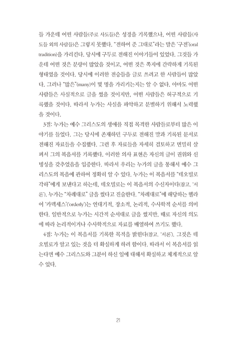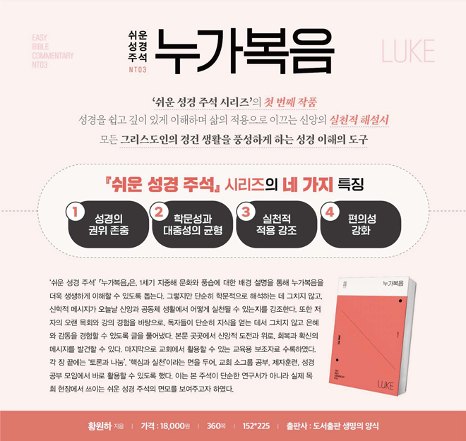 Àú¼¿Í ¿ª¼: ¡¸The theological role of signs in the Gospel of John¡¹ (Verlag Dr. Müller, 2008), ¡¸ÇÏÀ̵¨º£¸£Å© ¿ä¸®¹®´ä ÇØ¼³¡¹ (±³È¸¿Í ¼º°æ, 2015), ¡¸´ãÀÓ¸ñ»ç°¡ µÇ±â Àü¿¡ ¾Ë¾Æ¾ß ÇÒ 7°¡Áö¡¹ (°øÀú, ¼¼¿òºÏ½º, 2016), ¡¸ÀÀ´äÇ϶ó ½Å¾à¼º°æ¡¹ (¼¼¿òºÏ½º, 2016), ¡¸±³È¸ÀÇ Á÷ºÐÀÚ°¡ ¾Ë¾Æ¾ß ÇÒ 7°¡Áö¡¹ (°øÀú, ¼¼¿òºÏ½º, 2017), ¡¸¿äÇѺ¹À½¡¹ (SFC, 2017), ¡¸¼ºµµ°¡ ¾Ë¾Æ¾ß ÇÒ 7°¡Áö¡¹ (°øÀú, ¼¼¿òºÏ½º, 2018), ¡¸º£µå·ÎÀü¼ ÁÖÇØ¡¹ (±³È¸¿Í ¼º°æ, 2018), ¡¸¾ð¾àÀÇ °üÁ¡¿¡¼ º» ´Ù´Ï¿¤¼¡¹ (±³È¸¿Í ¼º°æ, 2018), ¡¸»çµµÇàÀü: °í½Å±³´Ü ¼³¸³ 60Áֳ⠱â³äÁÖ¼®¡¹ (ÃÑȸ ÃâÆÇ±¹, 2019), ¡¸¿äÇѺ¹À½¡¹ (°³Á¤ÆÇ, SFC, 2021). ¡¸±âµ¶±³ »ç¿ë ¼³¸í¼: ½Ê°è¸í¡¹ (¼¼¿òºÏ½º, 2021), ¡¸¿äÇѺ¹À½: ¼º°æ¿ø¹® »õ¹ø¿ª ³ëÆ®¡¹ (SFC, 2022), ¡¸°³Çõ½Å¾ÓÀ¸·Î ½Ã´ëÀб⡹ (ÆíÁý, ´ãºÏ, 2024), ¡¸»õ °¡Á· ¾È³»¼¡¹, ¡¸¼ºµµÀÇ Çå±Ý»ýȰ¡¹ (»ý¸íÀǾç½Ä, 2024)