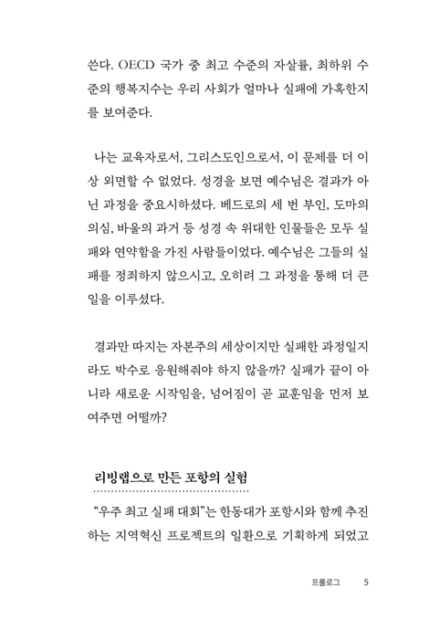 p114 ½ÇÆÐ¸¦ Á÷Á¢ °æÇèÇØº» »ç¶÷ÀÎ ¸¸Å, ¿À´Ã³¯ »çȸ ¼Ó¿¡¼ ½ÇÆÐ·Î Èûµé¾îÇÏ´Â »ç¶÷µéÀÇ ¸¶À½À» ±íÀÌ °ø°¨ÇÒ ¼ö ÀÖ¾ú°í, ±×¿¡ ¸Â´Â ´ë¾È µéÀ» °í¹ÎÇØ º¼ ¼ö ÀÖ°Ô µÆ´Ù.