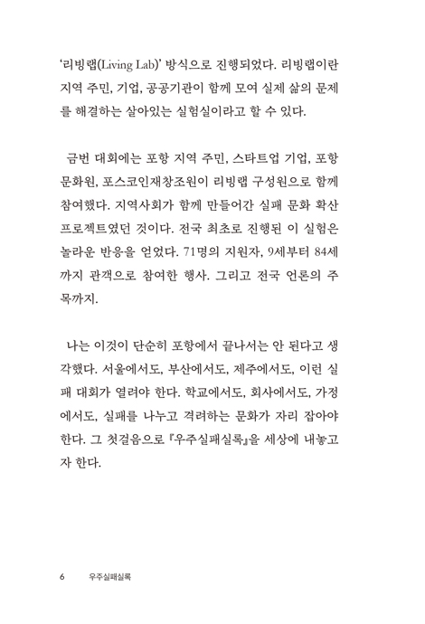 p19 ÁøÁ¤ÇÑ Çõ½ÅÀº ½ÇÆÐ¸¦ Çã¿ëÇÏ´Â Åä¾ç¿¡¼¸¸ ÀÚ¶ö ¼ö ÀÖ´Ù. ½ÇÆÐ¸¦ µÎ·Á¿öÇÏÁö ¾Ê°í °ú°¨ÇÏ°Ô µµÀüÇÒ ¼ö Àִ ȯ°æ, ½ÇÆÐÇØµµ ´Ù½Ã ÀϾ ¼ö ÀÖ´Â ½É¸®Àû ¾ÈÀü¸Á, ½ÇÆÐ °æÇèÀ» °øÀ¯ÇÏ°í ¹è¿ï ¼ö ÀÖ´Â Ä¿¹Â´ÏƼ°¡ ¹Ù·Î Çõ½Å »ýŰèÀÇ Çʼö ¿ä¼Ò¶ó°í »ý°¢ÇÑ´Ù.