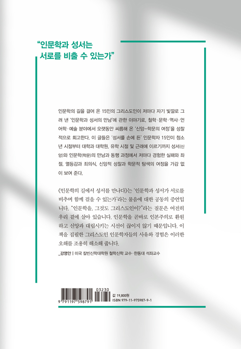¡¶Àι®ÇÐÀÇ ±æ¿¡¼ ¼º¼¸¦ ¸¸³ª´Ù¡·´Â ¡®Àι®Çаú ¼º¼°¡ ¼·Î¸¦ ºñÃ߸ç ÇÔ²² °ÉÀ» ¼ö Àִ°¡¡¯¶ó´Â ¹°À½¿¡ ´ëÇÑ °øµ¿ÀÇ Áõ¾ðÀÔ´Ï´Ù. ¡°Àι®ÇÐÀ», ±×°Íµµ ±×¸®½ºµµÀÎÀÌ?¡±¶ó´Â Áú¹®Àº ¿©ÀüÈ÷ ¿ì¸® °ç¿¡ »ì¾Æ ÀÖ½À´Ï´Ù. Àι®ÇÐÀ» °ð¹Ù·Î Àκ»ÁÖÀǷΠȯ¿øÇÏ°í ½Å¾Ó°ú ´ë¸³½ÃŰ´Â ½Ã¼±ÀÌ ²÷ÀÌÁö ¾Ê±â ¶§¹®ÀÔ´Ï´Ù. ÀÌ Ã¥À» ÁýÇÊÇÑ ±×¸®½ºµµÀÎ Àι®ÇÐÀÚµéÀÇ »çÀ¯¿Í °æÇèÀº ÀÌ·¯ÇÑ ¿ÀÇØ¸¦ Á¶¿ëÈ÷ ÇØ¼ÒÇØ ÁÝ´Ï´Ù.
