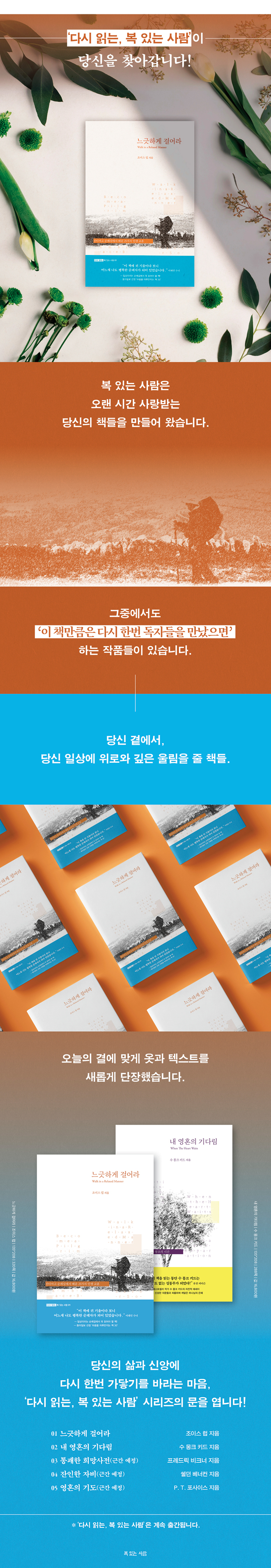 ¡º´À±ßÇÏ°Ô °É¾î¶ó¡»´Â ¼ø·Ê°¡ ±×´ë·Î ¹ßÀÇ ±âµµÀÌ°í ¸¶À½ÀÇ ±âµµÀ̸ç Å©°í ÀÛÀº ½Ã·ÃÀ» ÅëÇØ Á¤ÈµÇ´Â »îÀÇ ±â»ÝÀÓÀ» Àϱú¿ö ÁÝ´Ï´Ù. »êƼ¾Æ°í·Î ÇâÇÏ´Â3 7Àϰ£ÀÇ ¿©Á¤À» ´ãÀº 25ÆíÀÇ ±ÛÀº Á¦¸ñÀ» º¸´Â °Í¸¸À¸·Îµµ ¿µÀûÀÎ ºûÀÌ ½º¸çµì´Ï´Ù. ÀÌ Ã¥Àº ÇÏ´À´Ô°ú Àΰ£, ÀÚ¿¬°ú »ç¹°ÀÇ ¸¸³²ÀÌ ¾ó¸¶³ª ¼ÒÁßÇÑÁö¸¦ »ý»ýÇÏ°í ±¸Ã¼ÀûÀÎ À̾߱âµé·Î ±ú´Ý°Ô ÇÕ´Ï´Ù. °úµµÇÑ ÁýÂø°ú ¿å½É, ¼µÎ¸§°ú Á¶±ÞÁõ¿¡ Áßµ¶µÇ¾î »ì¾Æ°¡´Â ¿ì¸®¿¡°Ô ¡®´À±ßÇÏ°Ô °É¾î¶ó, ³»·Á³õÀ¸¶ó, ¸ØÃß¾î µÇµ¹¾Æº¸¶ó¡¯°í ²÷ÀÓ¾øÀÌ ±ÇÇÏ´Â ÀúÀÚÀÇ ¸»¿¡ ±Í ±â¿ïÀÌ´Ù º¸¸é, ¿ì¸® ¿ª½Ã ¡®°Ë¼ÒÇÏ°í °¨»ç¿¡ ³ÑÄ¡´Â ¼ø·ÊÀÚ¡¯·Î °Åµì³ª ÀÏ»ó ¼Ó¿¡¼ ¸¶À½ÀÌ ³Ð°í ±í°í ¸¼¾ÆÁö´Â üÇèÀ» Çϸç Çàº¹ÇØÁú °ÍÀÔ´Ï´Ù.