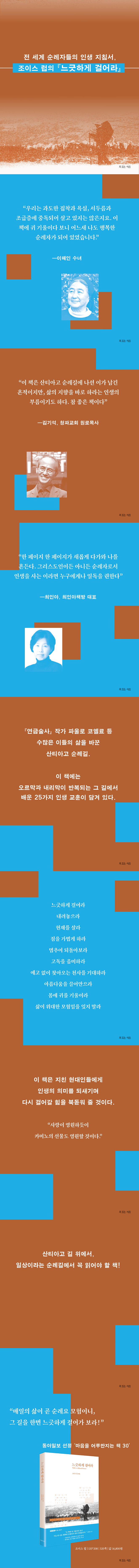 ¡º´À±ßÇÏ°Ô °É¾î¶ó¡»´Â Á¶À̽º ·´ ¼ö³à°¡ ¿¹¼øÀÇ ³ªÀÌ¿¡ ¿À·£ Ä£±¸ÀÌÀÚ ÀºÅðÇÑ ½ÅºÎÀÎ Åè ÆäÆÛ¿Í ÇÔ²² 37Àϰ£ 800ų·Î¹ÌÅÍÀÇ »êƼ¾Æ°í ¼ø·Ê±æÀ» °ÉÀ¸¸ç °ÇÁ® ¿Ã¸° Àλý ±³ÈÆÀ» 25°¡Áö ÁÖÁ¦·Î ´ã¾Æ³½ Ã¥ÀÌ´Ù.
