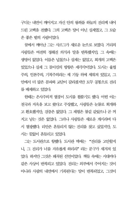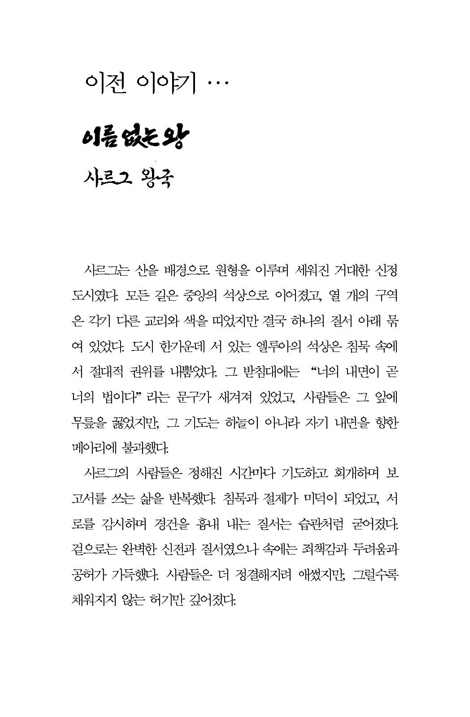 ±×´Â ÀÌ ²ÞÀ¸·Î »ç¸£±× Á¾±³Á¦±¹ÀÇ º»ÁúÀ» º»´Ù. °ÑÀ¸·Î´Â °æ°ÇÇØ º¸¿´Áö¸¸ Á߽ɿ¡´Â ¸»¾¸ÀÌ ¾ø¾ú´Ù. À̸§°ú ÀǽÄÀÌ Àΰݰú ¸»¾¸À» ´ë½ÅÇß°í, ¿ÜÀûÀÎ ¿µ±¤°ú üÇèÀº ÀÖ¾úÁö¸¸ °á±¹ °øÇã°¡ ³²¾Ò´Ù. Áú¼°¡ À¯ÁöµÇ´Â µ¿¾È¿¡µµ °ÅÁþ ±¸Á¶´Â ³»¸éÀ» Á¶¿ëÈ÷ Áö¹èÇϰí ÀÖ¾ú°í, ¿ëÀÌ Ç®·Á³¯ ¶§ °ÇÑ Ç̹ÚÀÌ ´ÚÄ¥ °ÍÀ» ±×´Â Á÷°¨ÇÑ´Ù.