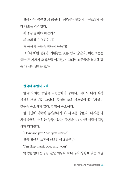Çϳª´ÔÀÇ »ç¶ûÀº ¼±¹°ÀÌ´Ù. ¿ì¸®ÀÇ »ç¶ûÀº ÀÌ¹Ì ¡®¹ÞÀº¡¯ »ç¶ûÀ¸·Î ½ÃÀÛÇÑ´Ù. ÇÏÁö¸¸ »ç¶ûÀ» »ì¾Æ³»±â À§Çؼ­´Â ¿¬½ÀÀÌ ÇÊ¿äÇÏ´Ù. »ç¶ûÀÇ ÈÆ·ÃÀº ´ë°¡°¡ ¾Æ´Ï¶ó »ç¶ûÀÇ ÀÀ´äÀÌ´Ù. p.74