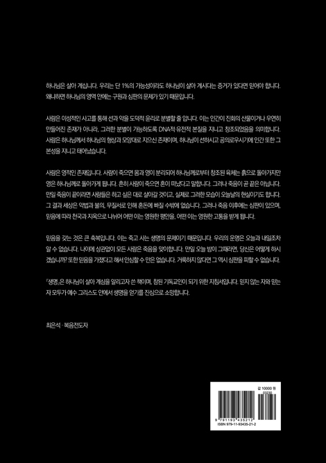 »ç¶÷Àº À̼ºÀûÀÎ »ç°í¸¦ ÅëÇØ ¼±°ú ¾ÇÀ» µµ´öÀû À±¸®·Î ºÐº°ÇÒ ÁÙ ¾Ð´Ï´Ù. ÀÌ´Â Àΰ£ÀÌ ÁøÈÀÇ »ê¹°À̰ųª ¿ì¿¬È÷ ¸¸µé¾îÁø Á¸Àç°¡ ¾Æ´Ï¶ó, ±×·¯ÇÑ ºÐº°ÀÌ °¡´ÉÇϵµ·Ï DNAÀû¡¤À¯ÀüÀû º»ÁúÀ» Áö´Ï°í âÁ¶µÇ¾úÀ½À» ÀǹÌÇÕ´Ï´Ù. »ç¶÷Àº Çϳª´Ô²²¼ Çϳª´ÔÀÇ Çü»ó°ú ¸ð¾ç´ë·Î ÁöÀ¸½Å Á¸ÀçÀ̸ç, Çϳª´ÔÀÌ ¼±ÇÏ½Ã°í °øÀǷοì½Ã±â¿¡ Àΰ£ ¶ÇÇÑ ±× º»¼ºÀ» Áö´Ï°í ž½À´Ï´Ù. »ç¶÷Àº ¿µÀûÀÎ Á¸ÀçÀÔ´Ï´Ù. »ç¶÷ÀÌ Á×À¸¸é ¸ö°ú ¿µÀÌ ºÐ¸®µÇ¾î Çϳª´Ô²²·ÎºÎÅÍ Ã¢Á¶µÈ À°Ã¼´Â ÈëÀ¸·Î µ¹¾Æ°¡Áö¸¸ ¿µÀº Çϳª´Ô²²·Î µ¹¾Æ°¡°Ô µË´Ï´Ù. ÈçÈ÷ »ç¶÷ÀÌ Á×À¸¸é È¥ÀÌ ¶°³µ´Ù°í ¸»ÇÕ´Ï´Ù. ±×·¯³ª Á×À½ÀÌ °ð ³¡Àº ¾Æ´Õ´Ï´Ù. ¸¸ÀÏ Á×À½ÀÌ ³¡À̶ó¸é »ç¶÷µéÀº ÇÏ°í ½ÍÀº ´ë·Î »ì¾Æ°¥ °ÍÀ̰í, ½ÇÁ¦·Î ±×·¯ÇÑ ¸ð½ÀÀÌ ¿À´Ã³¯ÀÇ Çö½ÇÀ̱⵵ ÇÕ´Ï´Ù. ±× °á°ú ¼¼»óÀº ¾Ç¹ý°ú ºÒÀÇ, ¹«Áú¼·Î ÀÎÇØ È¥µ·¿¡ ºüÁú ¼ö¹Û¿¡ ¾ø½À´Ï´Ù. ±×·¯³ª Á×À½ ÀÌÈÄ¿¡´Â ½ÉÆÇÀÌ ÀÖÀ¸¸ç, ¹ÏÀ½¿¡ µû¶ó õ±¹°ú Áö¿ÁÀ¸·Î ³ª´µ¾î ¾î¶² ÀÌ´Â ¿µ¿øÇÑ Æò¾ÈÀ», ¾î¶² ÀÌ´Â ¿µ¿øÇÑ °íÅëÀ» ¹Þ°Ô µË´Ï´Ù. ¹ÏÀ½À» °®´Â °ÍÀº Å« ÃູÀÔ´Ï´Ù. ÀÌ´Â Á×°í »ç´Â »ý¸íÀÇ ¹®Á¦À̱⠶§¹®ÀÔ´Ï´Ù. ¿ì¸®ÀÇ ¿î¸íÀº ¿À´Ã°ú ³»ÀÏÁ¶Â÷ ¾Ë ¼ö ¾ø½À´Ï´Ù. ³ªÀÌ¿¡ »ó°ü¾øÀÌ ¸ðµç »ç¶÷Àº Á×À½À» ¸ÂÀÌÇÕ´Ï´Ù. ¸¸ÀÏ ¿À´Ã ¹ãÀÌ ±×¶§¶ó¸é, ´ç½ÅÀº ¾î¶»°Ô ÇϽðڽÀ´Ï±î? ¶ÇÇÑ ¹ÏÀ½À» °¡Á³´Ù°í ÇØ¼ ¾È½ÉÇÒ ¼ö ¸¸Àº ¾ø½À´Ï´Ù. °Å·èÇÏÁö ¾Ê´Ù¸é ±× ¿ª½Ã ½ÉÆÇÀ» ÇÇÇÒ ¼ö ¾ø½À´Ï´Ù. ¡º»ý¸í¡»Àº Çϳª´ÔÀÌ »ì¾Æ °è½ÉÀ» ¾Ë¸®°íÀÚ ¾´ Ã¥À̸ç, ÂüµÈ ±âµ¶±³ÀÎÀÌ µÇ±â À§ÇÑ Áöħ¼ÀÔ´Ï´Ù. ¹ÏÁö ¾Ê´Â ÀÚ¿Í ¹Ï´Â ÀÚ ¸ðµÎ°¡ ¿¹¼ö ±×¸®½ºµµ ¾È¿¡¼ »ý¸íÀ» ¾ò±â¸¦ Áø½ÉÀ¸·Î ¼Ò¸ÁÇÕ´Ï´Ù. ÃÖÀº¼® ¡¤ º¹À½ÀüµµÀÚ [¸Ó¸®¸»] ¿¾³¯ Àεµ¿¡ ÇÑ ÀþÀº °úºÎ°¡ ºÎó ¾Õ¿¡ ³ª¾Æ°¡ ¾ÖÅëÇØÇϸç, º´Áß¿¡ ´©¿ö ÀÖ´Â Çϳª»ÓÀÎ ¾ÆµéÀ» »ì·Á ´Þ¶ó°í °£Ã»ÇÏ¿´½À´Ï´Ù. ±×¶§ ºÎó´Â °úºÎ¿¡°Ô ÇÑ ¹øµµ »ç¶÷ÀÌ Á×Àº ÀÏÀÌ ¾ø´Â ÁýÀ» ã¾Æ°¡ ½Ò ÇÑ ÁÜÀ» ¾ò¾î ¿Í Á×À» ²ú¿© ¸ÔÀÌ¸é ¿Ü¾ÆµéÀÌ »ì¾Æ³¯ °ÍÀ̶ó°í ¸»ÇÏ¿´½À´Ï´Ù. ÀÌ ¸»À» µéÀº °úºÎ´Â ÇØ°¡ Áú ¶§±îÁö ÇÑ ¹øµµ »ç¶÷ÀÌ Á×Àº ÀÏÀÌ ¾ø´Â ÁýÀ» ã¾Æ´Ù³æÁö¸¸, ³¡³» ±×·± ÁýÀ» ãÁö ¸øÇÏ°í ºó¼ÕÀ¸·Î ºÎó¿¡°Ô µ¹¾Æ¿Ô½À´Ï´Ù. ºÎó´Â °úºÎ¿¡°Ô ¸»ÇÏ¿´½À´Ï´Ù. ¡°Àڸſ©, »ç¶÷ÀÌ Å¾¸é ¹Ýµå½Ã Á×´Â °ÍÀ̸ç, Àο¬ µû¶ó ÀϾ°í Àο¬ µû¶ó »ç¶óÁö´Ï ¹«¾ùÀ» ±×¸® ½½ÆÛÇÏ·ª.¡± ÀÌ´Â »óȲÀ» º¯È½ÃŰ°Å³ª ¹®Á¦¸¦ ÇØ°áÇϱ⺸´Ù, Á×À½À» ¼÷¸íÀ¸·Î ¹Þ¾ÆµéÀÌ¸ç ¼ø¸®´ë·Î »ì¾Æ°¡¶ó´Â °¡¸£Ä§À̾ú½À´Ï´Ù. ÇÑÆí, ¿¹¼ö´Ô²²¼ Á¦ÀÚµé°ú ¸¹Àº ¹«¸®¿Í ÇÔ²² ³ªÀμºÀ¸·Î °¡½Ç ¶§¿´½À´Ï´Ù. ¼º¹® ¹Û¿¡¼ »ç¶÷µéÀÌ Á×Àº À̸¦ ¸Þ°í ³ª¿À°í ÀÖ¾ú´Âµ¥, ±×´Â ÇÑ °úºÎÀÇ ¿Ü¾ÆµéÀ̾ú½À´Ï´Ù. °úºÎ´Â Á×Àº ¾ÆµéÀ» º¸¸ç ÇѾøÀÌ ¾ÖÅëÇØÇÏ¸ç ¿ï°í ÀÖ¾ú½À´Ï´Ù. ±×¶§ ¿¹¼ö´Ô²²¼ ±× °úºÎ¸¦ ºÒ½ÖÈ÷ ¿©±â½Ã°í ¡°¿ïÁö ¸»¶ó¡± ÇϽøç Á×Àº ¾Æµé¿¡°Ô °¡±îÀÌ °¡ ¸»¾¸Çϼ̽À´Ï´Ù. ¡°Ã»³â¾Æ, ³»°¡ ³×°Ô ¸»Çϳë´Ï ÀϾ¶ó.¡± ±×·¯ÀÚ Á×¾ú´ø ÀÚ°¡ ÀϾ ¾É¾Æ ¸»À» ÇÏ¿´°í, ¿¹¼ö´Ô²²¼´Â ±× û³âÀ» ¾î¸Ó´ÏÀÇ Ç°À¸·Î µ¹·Áº¸³» Áּ̽À´Ï´Ù. ±âµ¶±³ÀÇ ±Ùº»Àº ´Ù¸¥ Á¾±³¿Í ºÐ¸íÈ÷ ´Ù¸¨´Ï´Ù. ºÎó´Â Á×À½À» ¼÷¸íÀ¸·Î ¹Þ¾ÆµéÀÌ´Â ÇѰ踦 º¸¿© ÁÖÁö¸¸, ¿¹¼ö´ÔÀº Á×Àº ÀÚ¸¦ »ì¸®½ÉÀ¸·Î »ý¸íÀ» ¾ò´Â ±â»ÝÀ» ¸Àº¸°Ô Çϼ̽À´Ï´Ù. À§ÀÇ ³»¿ëÀº ½º´Ô¿¡¼ ¸ñ»ç°¡ µÇ½Å ±è¼ºÈ ¸ñ»ç´ÔÀÇ °£Áõ °¡¿îµ¥ ÀοëÇÑ ±ÛÀÔ´Ï´Ù. ¿¹¼ö´ÔÀº ¿ì¸®°¡ ½½Çà ¶§ ÇÔ²² ½½ÆÛÇϽøç À§·ÎÀÚ°¡ µÇ¾î Áּ̰í, ÃßÇÏ°í ¿¬¾àÇÑ ¿ì¸®¸¦ ¸¸Á® ÁÖ½Ã°í ¾È¾Æ Áּ̽À´Ï´Ù. ¿¹¼ö´ÔÀº ¿ì¸®ÀÇ Ä£±¸°¡ µÇ¾î Áּ̰í, ¾îµÒ °¡¿îµ¥¼ ºûÀÌ µÇ¾î Áּ̽À´Ï´Ù. ¿Ü·Ó°í ¹æÈ²ÇÒ ¶§¿¡µµ ºÒ½ÖÇÑ ÀÚ¸¦ µ¹º¸½Ã°í º´µç ÀÚ¿Í ´«¸Õ ÀÚ, ¾ÉÀº¹ðÀ̸¦ °íÄ¡¼ÌÀ¸¸ç, ±Í½ÅÀ» ÂѾƳ»½Ã°í Á×Àº ÀÚ¸¦ »ì¸®¼Ì½À´Ï´Ù. ¿¹¼ö´ÔÀº Çϳª´ÔÀÇ ¾ÆµéÀ̽øç, ³·°í õÇÑ ÀÚ¸®¿¡ ³»·Á¿Í ¼¶±èÀ» ¹ÞÀ¸·Á ÇϽаÍÀÌ ¾Æ´Ï¶ó ¿ì¸®¸¦ ¼¶±â·¯ ¿À¼Ì½À´Ï´Ù. ¿¹¼ö´ÔÀº ½ÇÁ¦·Î ÀÌ ¶¥¿¡ ¿À½Å ¿ª»çÀû Àι°À̽øç, ¿¹¼ö´ÔÀÇ ºÎȰÀº Çϳª´ÔÀÌ »ì¾Æ °è½ÉÀ» Áõ°ÅÇÕ´Ï´Ù. ±âµ¶±³ ½Å¾ÓÀº üÇèÀÇ ½Å¾ÓÀÔ´Ï´Ù. ±×·¸±â¿¡ ¼öõ ³âÀÌ Áö³ªµµ »ç¶óÁöÁö ¾Ê°í ¿À´Ã³¯±îÁö À̾îÁ® ¿À¸ç ¹ø¼ºÇϰí ÀÖ´Â °ÍÀÔ´Ï´Ù. ÀÌ 