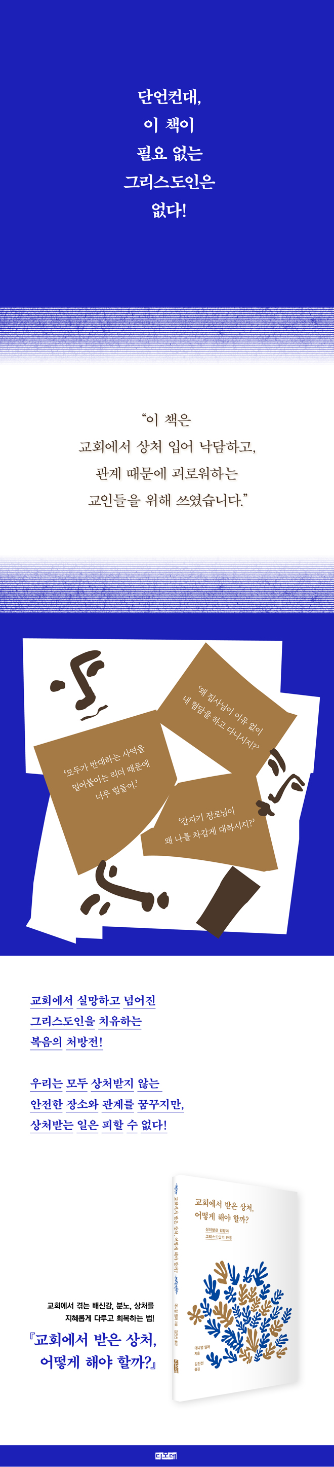 ¡º±³È¸¿¡¼ ¹ÞÀº »óó, ¾î¶»°Ô ÇØ¾ß ÇÒ±î?¡»´Â »ç¶÷µé°úÀÇ °¥µîÀ¸·Î ÁöÄ£ ¸¶À½À» ´Ùµ¶¿©ÁÖ°í, ³» ¼ÓÀ» ¾îÁö·´È÷´Â ´«¾ÕÀÇ Áöü¸¦ ÁøÁ¤À¸·Î »ç¶ûÇÏ°í ¿ë¼ÇÒ ÈûÀ» ºÏµ¸¾ÆÁÙ °ÍÀÌ´Ù. ÀÌ Ã¥Àº È¥ÀÚ ÀÐÀ¸¸é ÂùÂùÈ÷ ÀÚ½ÅÀ» µ¹¾Æº¸°Ô ÇØÁÙ ½Ã°£À» ÁÙ °ÍÀ̰í, °øµ¿Ã¼°¡ ´Ù ÇÔ²² ÀÐÀ¸¸é ¼Ó ±íÀº À̾߱⸦ ³ª´ ±âȸ¸¦ ÁÙ °ÍÀÌ´Ù. »õÇØ³ª ¿¬¸» µî Á¤±âÀûÀ¸·Î ÀÌ ÂªÀº Ã¥À» ²¨³» Àб⸦ ÃßõÇÑ´Ù. ªÁö¸¸ Å« ¿µÇâ·ÂÀ» ¹ßÈÖÇÏ´Â Á¶¾ðÀÌ ´ã±ä ÀÌ Ã¥Àº ±³È¸¿¡¼ ÁöÄ¡°í »óÇÑ ¸¶À½À» ȸº¹½ÃÄÑÁÖ°í, ¾ÆÇÄÀÇ ½Ã°£À» ¿µÀû ¼ºÀåÀÇ ½Ã°£À¸·Î ¸¸µé¾îÁÙ °ÍÀÌ´Ù.