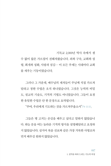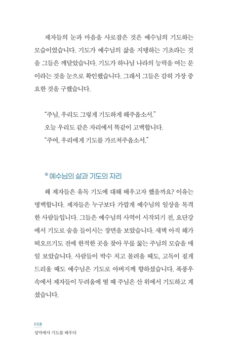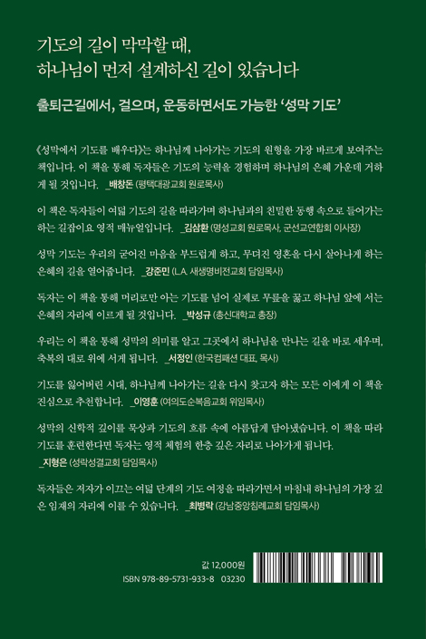 _¹èâµ· (ÆòÅô뱤±³È¸ ¿ø·Î¸ñ»ç) ¼º¸·Àº ±¸¾à ½Å¾ÓÀÇ ÇÙ½ÉÀÌÀÚ, Çϳª´ÔÀÌ ¸ð¼¼¿¡°Ô Á÷Á¢ õ»óÀÇ ¼³°è¸¦ º¸¿©ÁÖ¸ç ¼¼¿ì°Ô ÇϽаŷèÇÑ »îÀÇ ÁöµµÀÔ´Ï´Ù. ¿À´Ã³¯ ¿ì¸® ¶ÇÇÑ ±¤¾ß °°Àº ¼¼»óÀ» °ÉÀ¸¸ç ¼º¸·ÀÇ ±âµµ¸¦ ÅëÇØ Çϳª´ÔÀÇ ÀÓÀ縦 üÇèÇÏ°í »îÀÇ ¹æÇâÀ» ´Ù½Ã ¼¼¿ï ¼ö ÀÖ½À´Ï´Ù. ÀÌ Ã¥Àº µ¶ÀÚµéÀÌ ±× ¿©´ü ±âµµÀÇ ±æÀ» µû¶ó°¡¸ç Çϳª´Ô°úÀÇ Ä£¹ÐÇÑ µ¿Çà ¼ÓÀ¸·Î µé¾î°¡´Â µ¥ ±æÀâÀÌ¿ä ¿µÀû ¸Å´º¾óÀÌ µÉ °ÍÀ» È®½ÅÇÕ´Ï´Ù. _±è»ïȯ ¸ñ»ç (¸í¼º±³È¸ ¿ø·Î¸ñ»ç, ±º¼±±³¿¬ÇÕȸ ÀÌ»çÀå) ÀÌ Ã¥Àº ´Ü¼øÇÑ ±âµµÀÇ ¾È³»¼°¡ ¾Æ´Õ´Ï´Ù. ¼º¸· ±âµµ¸¦ ÅëÇØ Çϳª´Ô ÀÓÀçÀÇ ±æ·Î ¿ì¸®¸¦ ÃÊ´ëÇÏ´Â ¿µÀû ¿©Á¤ÀÇ ÁöµµÀÔ´Ï´Ù. ¼º¸·ÀÇ ¹®¿¡¼ Áö¼º¼Ò¿¡ À̸£±â±îÁö ±âµµÀÇ ¹ß°ÉÀ½À» µû¶ó°¡´Ù º¸¸é ¾î´À»õ ¿ì¸®ÀÇ ÀÏ»óÀÌ ¼º¼Ò°¡ µÇ°í ¿ì¸®ÀÇ »îÀÌ ¿¹¹è°¡ µÇ´Â ÀºÇý¸¦ °æÇèÇÏ°Ô µË´Ï´Ù. Ưº°È÷ Àú´Â ÀÌ Ã¥À» ÅëÇØ Çѱ¹ ±³È¸ ¾È¿¡ »õ·Î¿î ±âµµÀÇ ºÎÈïÀÌ ÀϾ±æ °£ÀýÈ÷ ¼Ò¸ÁÇÕ´Ï´Ù. Çü½ÄÀûÀÎ ±âµµ°¡ ¾Æ´Ï¶ó Çϳª´Ô°úÀÇ ±íÀº Ä£¹ÐÇÔ ¼ÓÀ¸·Î µé¾î°¡´Â ±âµµÀÇ È¸º¹ÀÌ ÀϾ±æ ¹Ù¶ø´Ï´Ù. ¼º¸· ±âµµ´Â ¿ì¸®ÀÇ ±»¾îÁø ¸¶À½À» ºÎµå·´°Ô ÇÏ°í ¹«µ®Áø ¿µÈ¥À» ´Ù½Ã »ì¾Æ³ª°Ô ÇÏ´Â ÀºÇýÀÇ ±æÀÌ µÉ °ÍÀÔ´Ï´Ù. _°ÁعΠ(L.A. »õ»ý¸íºñÀü±³È¸ ´ãÀÓ¸ñ»ç) ¿ì¸®´Â dz¼ºÇÑ ÇÁ·Î±×·¥°ú ´Ù¾çÇÑ »ç¿ªÀÇ ¿¸Å¸¦ °ÅµÎ¾úÁö¸¸ Á¤ÀÛ ±âµµÀÇ ¹«¸Àº ¾àÇØÁø ½Ã´ë¸¦ Áö³ª°í ÀÖ½À´Ï´Ù. ÀÌ·¯ÇÑ ¶§¿¡ ÀÌ Ã¥ÀÌ ¿ì¸®¿¡°Ô ÁÖ¾îÁø °ÍÀº ÂüÀ¸·Î Å©°íµµ ±ÍÇÑ Çϳª´ÔÀÇ ÀºÇýÀÔ´Ï´Ù. ÀúÀÚ´Â ¼º¸·ÀÇ ±íÀº ½ÅÇÐÀû Àǹ̸¦ ´Ü¼øÇÑ ÇØ¼®¿¡ ¸Ó¹°Áö ¾Ê°í, ½ÇÁ¦ ±âµµÀÇ ÈÆ·Ã °úÁ¤À¸·Î Ç®¾î³»¾î µ¶ÀÚµéÀÌ Çϳª´Ô ¾Õ¿¡ Á÷Á¢ ³ª¾Æ°¡µµ·Ï À̲ü´Ï´Ù. ÀÌ Ã¥Àº ±âµµ¿¡ °üÇÑ ÀÌ·ÐÀ» ¼³¸íÇÏ´Â µ¥ ±×Ä¡Áö ¾Ê°í ±âµµÀÇ »îÀ̶õ ¹«¾ùÀÌ¸ç ¾î¶»°Ô ¿ì¸®ÀÇ Àϻ󿡼 »ì¾Æ ¿òÁ÷ÀÏ ¼ö Àִ°¡¸¦ »ý»ýÇÏ°Ô º¸¿©ÁÝ´Ï´Ù. _¹Ú¼º±Ô (ÃѽŴëÇб³ ÃÑÀå) Áß¿äÇÑ °¡Ä¡µéÀº ¶§·Î °ü³äÀûÀÌ°í ¸ðÈ£ÇÏ°Ô ´À²¸Áú ¶§°¡ ÀÖ½À´Ï´Ù. ±×·¡¼ ¸íÈ®ÇÏ°Ô Ç®¾î³»´Â ÀÛ¾÷ÀÌ ÇÊ¿äÇÕ´Ï´Ù. ¸íÄèÇÔÀÇ À¯ÀÍÀº ¹Ù·Î ¡®¼±ÅÃÇÒ ¼ö ÀÖ´Ù¡¯´Â µ¥ ÀÖ½À´Ï´Ù. ¼º¸·ÀÇ Àǹ̸¦ ¾Ë°í, ±×°÷¿¡¼ ¸¸³ªÁֽô Çϳª´ÔÀ» ¾Æ´Â °ÍÀº ¿ì¸®ÀÇ ½Å¾ÓÀ» ¹Ù·Î ¼¼¿ì´Â ÀÏÀÔ´Ï´Ù. ±è¼ºÀÏ ¸ñ»ç´ÔÀÌ ¸»¾¸ÇϽŠ´ë·Î ¿ì¸®´Â À̸¦ ¸ÅÀÏ ¼±ÅÃÇϰí ÈÆ·ÃÇØ¾ß ÇÕ´Ï´Ù. ±× ½À°üÀÌ ¿ì¸®ÀÇ »îÀ» Çϳª´ÔÀÇ ÃູÀ» ´ãÀ» ¸¸ÇÑ Å©°í ¾Æ¸§´Ù¿î ±×¸©À¸·Î ºú¾î°¥ °ÍÀÔ´Ï´Ù. _¼Á¤ÀÎ ¸ñ»ç (Çѱ¹ÄÄÆÐ¼Ç ´ëÇ¥) ¿À´Ã³¯ ¿ì¸®´Â ½±°Ô ±âµµ¸¦ ¸»ÇÏÁö¸¸ Á¤ÀÛ ±âµµÀÇ º»ÁúÀÌ ¹«¾ùÀÎÁö ÀØ°í »ì¾Æ°©´Ï´Ù. Çϳª´Ô°ú ¸¸³², ÀÚ½ÅÀ» ³·Ãß´Â °â¼Õ, ŸÀÎÀ» ÇâÇÑ Áߺ¸, ¿¹¹èÀÇ ¶³¸² ÀÌ ¸ðµç °ÍÀÌ ¼º¸·ÀÇ ±¸Á¶ ¾È¿¡ ±×¸®°í ÀÌ Ã¥ ¾È¿¡ °í½º¶õÈ÷ ´ã°Ü ÀÖ½À´Ï´Ù. ±¤¾ßÀÇ ¿©Á¤ ¼Ó¿¡¼µµ Çϳª´ÔÀ» ¿¹¹èÇß´ø À̽º¶ó¿¤Ã³·³ ¿À´Ã ¿ì¸®µµ ÀÌ Ã¥À» ÅëÇØ ÀÏ»óÀÇ ÇѰ¡¿îµ¥¼ ¼º¼ÒÀÇ ±âµµ¸¦ ȸº¹Çϱ⸦ ¹Ù¶ø´Ï´Ù. ±âµµ¸¦ ÀÒ¾î¹ö¸° ½Ã´ë, Çϳª´Ô²² ³ª¾Æ°¡´Â ±æÀ» ´Ù½Ã ã°íÀÚ ÇÏ´Â ¸ðµç ÀÌ¿¡°Ô ÀÌ Ã¥À» Áø½ÉÀ¸·Î ÃßõÇÕ´Ï´Ù. _ÀÌ¿µÈÆ (¿©Àǵµ¼øº¹À½±³È¸ À§ÀÓ¸ñ»ç) ±âµ¶±³ ½Å¾ÓÀº »ó¡°ú °ü·ÃÀÌ ÀÖ½À´Ï´Ù. ½Å¾ÓÀÇ º»Áú, ±× ¾Ë¸ÍÀÌ´Â Çϳª´ÔÀ» ¸¸³ª´Â µ¥ ÀÖ½À´Ï´Ù. ±âµ¶±³ Áø¸®ÀÇ ÇÙ½ÉÀº ¾ðÁ¦³ª Çϳª´Ô üÇè°ú ¸Â´ê¾Æ ÀÖ½À´Ï´Ù. ±×·¯³ª Çϳª´ÔÀº ¿µÀ̽ñ⿡ ¿ì¸®ÀÇ ´«À¸·Î´Â º¼ ¼ö ¾ø°í ¹°¸®ÀûÀÎ °¨°¢À¸·Î´Â ÆÄ¾ÇÇÒ ¼ö ¾ø½À´Ï´Ù. ±×·¡¼ Çϳª´Ô²²¼´Â ¡®°Å·èÇÑ »ó¡µé¡¯À» ÅëÇØ ¿ì¸®¸¦ ¸¸³ªÁֽʴϴÙ. ÇѰè ÀÖ´Â Àΰ£ÀÌ Áö°í(ò¸ÍÔ)ÀÇ ¿µÀû Á¸ÀçÀ̽ŠÇϳª´ÔÀ» ¸¸³¯ ¼ö ÀÖµµ·Ï, ÀºÇýÀÇ Åë·Î¸¦ ¸¶·ÃÇØÁֽаÍÀÔ´Ï´Ù. _ÁöÇüÀº (¸»¾¸»î°øµ¿Ã¼ ¼º¶ô¼º°á±³È¸ ´ãÀÓ¸ñ»ç) ÀúÀÚ´Â ¹Ù·Î ±× ¼û°áÀ» ¼º¸· ¾ÈÀÇ ±âµµ·Î Ç®¾î³À´Ï´Ù. ±âµµ·Î Çϳª´ÔÀ» ´À³¢°í ¸¸³ª°í ¸¸Áý´Ï´Ù. µ¶ÀÚµéÀº ÀúÀÚ°¡ À̲ô´Â ¿©´ü ´Ü°èÀÇ ±âµµ ¿©Á¤À» µû¶ó°¡¸é¼ ¸¶Ä§³» Çϳª´ÔÀÇ °¡Àå ±íÀº ÀÓÀçÀÇ ÀÚ¸®¿¡ À̸£´Â °æÇèÀ» ÇÏ°Ô µÉ °ÍÀÔ´Ï´Ù. ¼º¸·À» ¿¹¹è·Î ÇØ¼®ÇÑ ±ÛÀº ¸¹Áö¸¸, ±âµµ·Î Ç®¾î³½ ±ÛÀº µå¹´´Ï´Ù. ¸¶Ä¡ ¿¹¼ö´Ô²²¼ ¼ºÀü¿¡ µé¾î°¡ ¡°³» ÁýÀº ¸¸¹ÎÀÌ ±âµµÇÏ´Â ÁýÀÌ¶ó¡± ÇϽЏ»¾¸Ã³·³ ÀúÀÚ´Â ¡°¼º¸·Àº ¸¸¹ÎÀÌ ±âµµÇÏ´Â ÁýÀÌ´Ù¡±¶ó°í ¿ÜÄ¡¸ç ¿ì¸®¸¦ ÃÊ´ëÇÕ´Ï´Ù. _ÃÖº´¶ô (°³²Áß¾