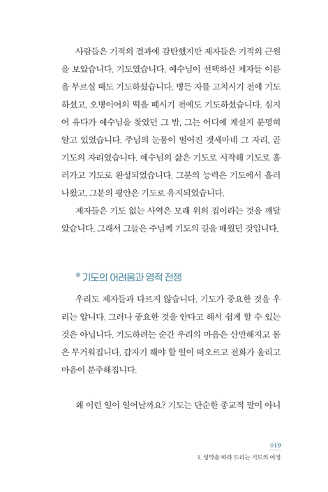 ±×¸®½ºµµÀο¡°Ô ÁֽŠƯ±ÇÀÎ ±âµµ´Â Çϳª´Ô°ú ±íÀº °ü°è·Î µé¾î°¡´Â Åë·Î·Î¼ ¿µÈ¥ÀÇ È£ÈíÀ̶ó°í ºÒ¸± ¸¸Å Áß¿äÇÕ´Ï´Ù. ±âµµ¸¦ ÅëÇØ Çϳª´ÔÀ¸·ÎºÎÅÍ »îÀÇ Àεµ¸¦ ¹Þ°í À§·Î¸¦ ¾òÀ» »Ó ¾Æ´Ï¶ó Çϳª´Ô ³ª¶óÀÇ »ç¿ª¿¡ Âü¿©ÇÏ´Â ÈûÀ» ¾ò°Ô µË´Ï´Ù. À̹ø¿¡ ±è¼ºÀÏ ¸ñ»ç´ÔÀ» ÅëÇØ ÀÌÇØÇϱ⠽±°Ô ¾´ Ã¥ ¡¶¼º¸·¿¡¼ ±âµµ¸¦ ¹è¿ì´Ù¡·´Â ¸ñȸÀÚ³ª ¼ºµµµé¿¡°Ô ±âµµ¸¦ ¹Ù·Î ¾Æ´Â µ¥ Å« µµ¿òÀ» ÁÙ °ÍÀÔ´Ï´Ù. ÀÌ Ã¥À» ÅëÇØ ±âµµÀÇ ´É·ÂÀ» °æÇèÇϸç Çϳª´ÔÀÇ ÀºÇý °¡¿îµ¥ °ÅÇÏ°Ô µÉ °ÍÀ» È®½ÅÇÕ´Ï´Ù.