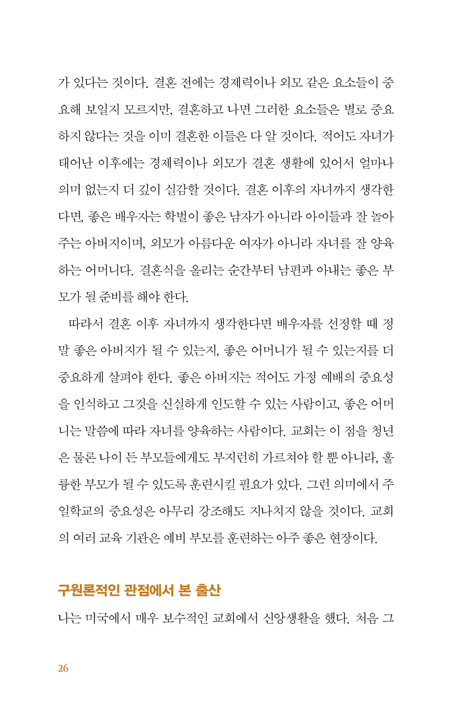 °áÈ¥Àº Çϳª´ÔÀÇ ÀÏÀÌ´Ù. °áÈ¥ÀÌ Çϳª´ÔÀÇ ÀÏÀ̶ó´Â ±³¸®´Â °áÈ¥À» ÀÌÇØÇϴµ¥ ÀÖ¾î °¡Àå Áß¿äÇϸç, ¾Æ¹«¸® °Á¶Çصµ Áö³ªÄ¡Áö ¾Ê´Â´Ù. ÀÌ ±³¸®¿¡ ´ëÇØ¼ ¹«ÁöÇÏ°Ô µÉ ¶§, °áÈ¥Àº Çϳª´ÔÀÇ ÀÏÀÌ ¾Æ´Ï¶ó Àΰ£ÀÇ ÀÏ·Î ¹Ù²î°Ô µÇ°í, °á±¹ ½ÅÀÚ¿Í ºñ½ÅÀÚÀÇ °áÈ¥Àº º°¹Ý Â÷À̰¡ ¾ø°Ô µÈ´Ù. _p.13