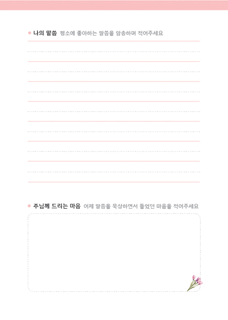 - ±àÁ¤Àû Á¤¼­¿Í Ȱ±âÂù ÀÏ»ó Áö¿ø : ÀڽŰú ŸÀÎÀ» À§ÇÑ ±âµµÁ¦¸ñ, °¨»ç¿Í ȸ°³¸¦ Àû¾îº¸´Â Ȱµ¿À» ÅëÇØ Çã¶ôÇϽŠ¿À´ÃÀ» ±àÁ¤ÀûÀ̰í Ȱ±âÂ÷°Ô ´©¸± ¼ö ÀÖµµ·Ï µ½½À´Ï´Ù.