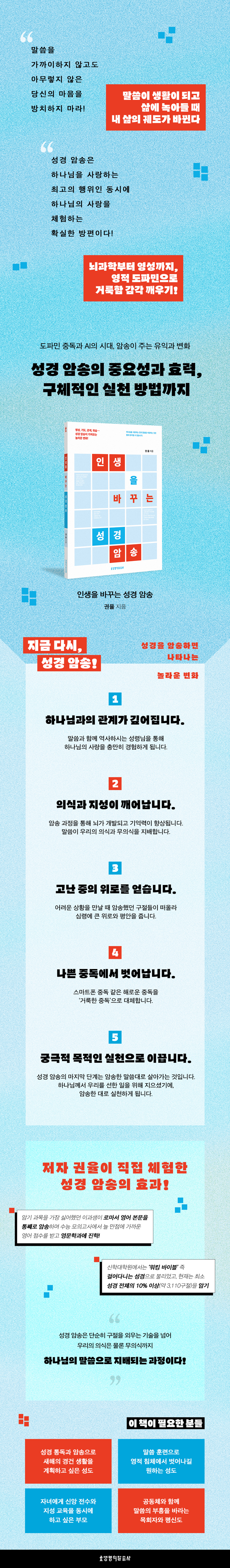 ¹«°Å¿î ¼º°æÃ¥º¸´Ù °£ÆíÇÏ°Ô ¸»¾¸À» ãÀ» ¼ö ÀÖ´Â ÈÞ´ëÆù ¾îÇÃÀ» »ç¿ëÇϰí, ½Å¾Ó °í¹Îµµ AI¿¡°Ô Á¶¾ðÀ» ±¸ÇÏ´Â ½Ã´ë°¡ µÇ¾ú´Ù. º¸Á¶ ¼ö´ÜÀÌ ¸¹Àº ½Ã´ë¿¡ ¿Ö ¸»¾¸À» Á÷Á¢ ÀÔÀ¸·Î ¿Ü¿ì°í ³» ¸Ó¸®¿¡ »õ°Ü¾ß ÇÒ±î? ÀúÀÚ ±ÇÀ² ¸ñ»ç´Â ¼º°æ ¾Ï¼ÛÀ» ÅëÇØ ¾òÀº ÀºÇý¸¦ ¹ÙÅÁÀ¸·Î, ¾Ï¼ÛÀÌ ¾î¶»°Ô ¼ºµµÀÇ Àǽİú Áö¼ºÀ» º¯È½ÃŰ´ÂÁö ¿ª¼³ÇÑ´Ù. ÀÚ½ÅÀº ÁßÇлý ¶§ ¼º°æ ¾Ï¼ÛÀ» ½ÃÀÛÇØ, ¾Ï±â °ú¸ñÀ» °¡Àå ½È¾îÇß´ø À̰ú»ý¿¡¼ ·Î¸¶¼ ¿µ¾î º»¹®À» Åë°·Î ¾Ï¼ÛÇÏ´Â ¾Ï±âÀÇ ½ÅÀ¸·Î °Åµì³µ´Ù. ±Þ±â¾ß ¼ö´É ¸ðÀǰí»ç¿¡¼ ´Ã ¸¸Á¡¿¡ °¡±î¿î ¿µ¾î Á¡¼ö¸¦ ¹Þ°í ¿µ¹®Çаú¿¡ ÁøÇÐÇß´Ù. ½ÅÇб³¿¡¼´Â ¡®¿öÅ· ¹ÙÀÌºí¡¯ Áï °É¾î´Ù´Ï´Â ¼º°æÀ¸·Î ºÒ¸®¾ú°í, ÇöÀç´Â ÃÖ¼Ò ¼º°æ ÀüüÀÇ 10% ÀÌ»ó(¾à 3,110±¸Àý)À» ¾Ï±âÇÑ´Ù°í ÇÑ´Ù. ±×·¯³ª ´Ü¼øÈ÷ ±¸ÀýÀ» ¿Ü¿ì´Â ±â¼úÀ» ³Ñ¾î, ¾Ï¼ÛÀÌ ³ú¸¦ ±ú¿ì°í ±â¾ï·ÂÀ» Çâ»ó½ÃŰ¸ç ¿ì¸®ÀÇ ÀǽÄÀº ¹°·Ð ¹«ÀǽıîÁö Çϳª´ÔÀÇ ¸»¾¸À¸·Î Áö¹èµÇ´Â °úÁ¤À» °Á¶ÇÑ´Ù. ƯÈ÷ ¼º°æ ¾Ï¼ÛÀº Çö´ëÀÎÀÇ °íÁúº´ÀÎ ½º¸¶Æ®Æù Áßµ¶À» ¡®°Å·èÇÑ Áßµ¶¡¯À¸·Î ´ëüÇÒ ¼ö ÀÖ´Ù. ¸»¾¸À» ¶°¿Ã¸± ¶§ ºÐºñµÇ´Â ¿µÀû µµÆÄ¹ÎÀº ¼¼»óÀÌ ÁÖ´Â Äè¶ô°ú´Â ºñ±³ÇÒ ¼ö ¾ø´Â Èñ¿À» ¼±»çÇϸç, ÁËÀÇ À¯È¤ÀÌ Ã£¾Æ¿Ã ¶§ Áï°¢ÀûÀ¸·Î ÀúÇ×ÇÒ ¼ö ÀÖ´Â ¼º·ÉÀÇ ´É·ÂÀ» °ø±ÞÇÑ´Ù. ¼º°æÀ» ¾Ï¼ÛÇÏ¸é °Å·èÇÔ¿¡ ´ëÇÑ °¨°¢ÀÌ »ì¾Æ³ª°í, ÁË¿Í ½Î¿ö ÀÌ±æ ¼ö ÀÖ´Â Áö½ÄÀÌ »ý±â¸ç, Çϳª´ÔÀ» ´õ¿í´õ »ç¶ûÇÏ°Ô µÇ´Â °ÍÀÌ´Ù.