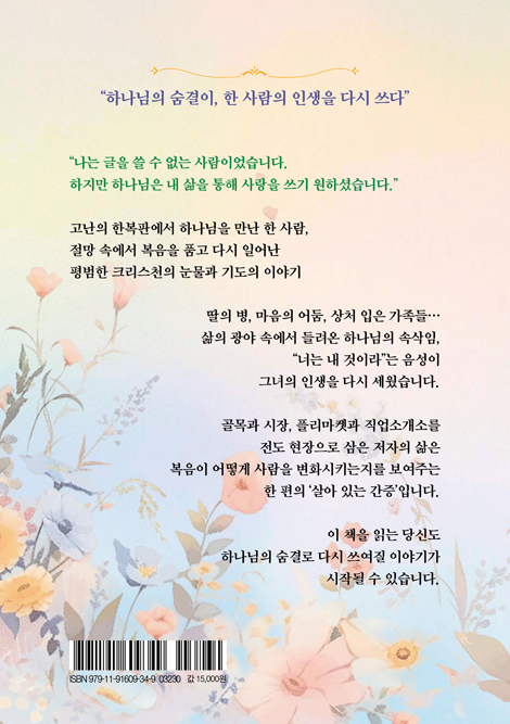 ÀúÀڴ Ưº°ÇÑ ¹®ÇÐÀû ±â±³ ¾øÀÌ, »îÀÌ °Ç³×´Â Áø½ÇÇÑ ¸ñ¼Ò¸®¿Í Çϳª´Ô²²·Î µ¹¾Æ°¡´Â ¿©Á¤À» ´ã¹éÇÑ ÇÊÄ¡·Î Ç®¾î³Â´Ù. ±×·¡¼ ÀÌ Ã¥Àº °£ÁõÁýÀ» ³Ñ¾î ¡®Çϳª´ÔÀÌ Á÷Á¢ ½á ³»·Á°¡½Å »îÀÇ ±â·Ï¡¯Ã³·³ ´Ù°¡¿Â´Ù.
