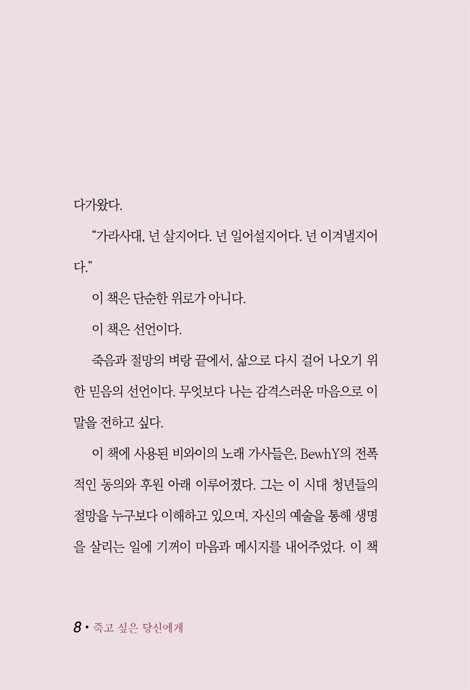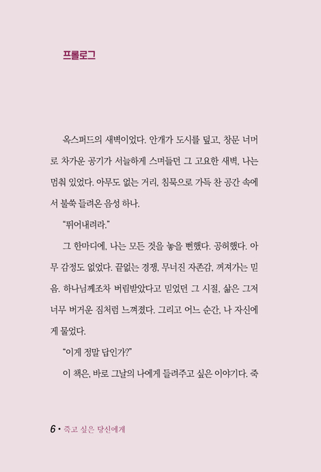 ⚫ ¡°Á×°í ½Í´Ù¡±´Â ¸»ÀÇ À̸鿡 ¼ûÀº, ¡°»ì°í ½Í´Ù¡±´Â ÁøÂ¥ ¸¶À½À» ²¨³»´Â Ã¥ÀÌ´Ù.