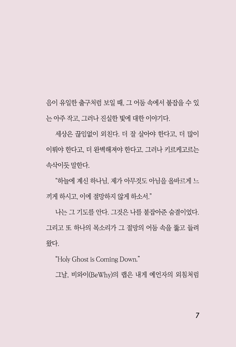 ¡°Holy Ghost is Coming Down¡±À̶ó´Â ·¦ °¡»çó·³, ÀÌ Ã¥Àº ´Ü¼øÇÑ À§·Î¸¦ ³Ñ¾î¼± ¹ÏÀ½ÀÇ ¼±¾ðÀÌ´Ù. ÀúÀÚ ¿À¼®È¯Àº ¿Á½ºÆÛµå »õº®ÀÇ ÀÚ»ì Ãæµ¿À» °í¹éÇϸç, ±× ¼ø°£ µé·Á¿Â À½¾Ç°ú ¸»¾¸ÀÌ ¾î¶»°Ô ±×¸¦ ºÙÀâ¾Ò´ÂÁö¸¦ Áø¼ÖÇÏ°Ô Ç®¾î³½´Ù. ۸£ÄÉ°í¸£ÀÇ ½ÇÁ¸ öÇÐÀº ¿©ÀüÈ÷ À¯È¿Çϸç, Á×À½ÀÇ À¯È¤ ¾Õ¿¡¼ ¡®»ì°íÀÚ ÇÏ´Â ¸ö¡¯Àº ¿©ÀüÈ÷ ¶³°í ÀÖ´Ù´Â °ÍÀ» Áõ¾ðÇÑ´Ù.