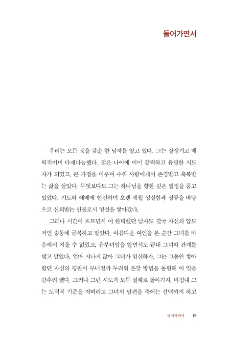 Àΰ£ ½É¸®¸¦ ´Ù·ç´Â Ã¥µéÀÌ ½ÃÁß ¼Á¡¿¡ ¸¹´Ù´Â °ÍÀº ±×¸¸Å Çö´ëÀεéÀÇ ¸¶À½ÀÌ ½±°Ô ¾ÆÇÁ°í Èûµé´Ù´Â ¹æÁõÀÌ´Ù. ±×·±µ¥ ¼º°æÀû °üÁ¡¿¡¼ ÀÌ·± ¾ÆÇĵéÀ» ´Ù·é Ã¥µéÀ» ã±â´Â ½±Áö ¾Ê´Ù. ÀÌ·± ½Ã±â¿¡ ÀÌ Ã¥Àº ´©±¸³ª ȸÇÇÇÏ°í ½ÍÀº ÀÚ½ÅÀÇ ³»¸é¿¡ ½ÇÀçÇÏ´Â ºÎÁ¤Àû °¨Á¤µéÀ» ¼º°æÀûÀ̸鼵µ ½ÇÁ¦ÀûÀ¸·Î ´Ù·ç´Â ¹æ¹ý¿¡ ´ëÇØ ¸íÈ®ÇÑ °¡À̵带 Á¦½ÃÇϰí ÀÖ´Ù. »ó´ã ÇöÀå°ú ½Å¾Ó °øµ¿Ã¼¿¡¼ »ç¿ªÇÏ´Â »ó´ãÀÚµé°ú »ç¿ªÀÚµéÀº ¹°·Ð ÀÚ½ÅÀÇ ¶Ç ´Ù¸¥ ¡®³ª¡¯ÀÇ Á¸À縦 ±ú´Ý°í, ÁøÁ¤ÇÑ ÀÚ¾ÆÀÇ È¸º¹À» ¹Ù¶ó´Â ¸ðµç À̵鿡°Ô ±â»Û ¸¶À½À¸·Î ÃßõÇÏ°í ½ÍÀº Ã¥ÀÌ´Ù.