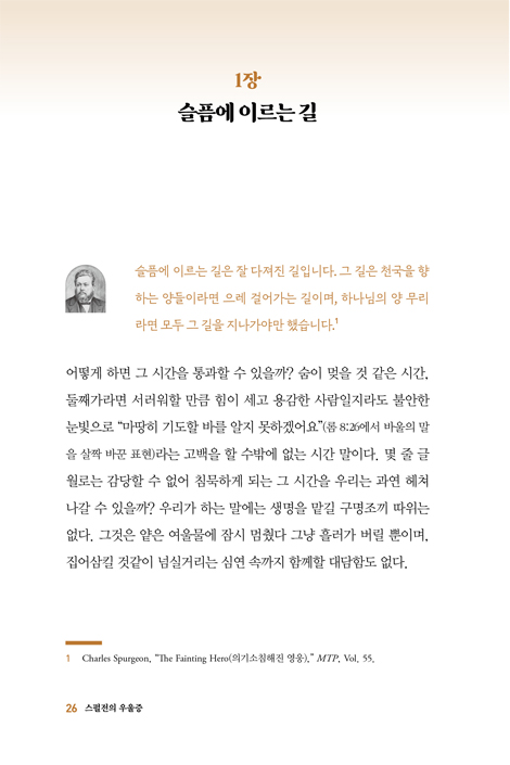 ÀÌ Ã¥Àº ½ºÆÞÀüÀÇ °æÇèÀ» ÅëÇØ ¿ì¿ïÁõ¿¡ ´ëÇÑ ½ÅÇÐÀû ±íÀÌ¿Í ¸ñȸÀû ¸íÄèÇÔÀ» µ¿½Ã¿¡ Á¦°øÇÑ´Ù. ±×¸®°í ¿µÈ¥ÀÇ ¾îµÎ¿î ¹ãÀ» Áö³ª°í ÀÖ´Â ¸ðµç ÀÌ¿¡°Ô, ´Ù½Ã±Ý ¼ûÀ» ½¯ ¿ë±â¸¦ ÁÖ´Â ¼Ò¸ÁÀÇ ¸Þ½ÃÁö¸¦ ¼±»çÇÑ´Ù. µ¶ÀÚµéÀº Àý¸ÁÀÇ °¹° ¼Ó¿¡¼ "µÎ·Á¿ö ¸»°Å¶ó! ¹°¼ÓÀº ±íÀ»Áö ¸ð¸£Áö¸¸, ±× ¹Ù´ÚÀº ¾ÈÀüÇÏ´Ü´Ù"¶ó°í ¸»¾¸ÇϽô ¿¹¼ö´ÔÀÇ µû¶æÇÑ À§·Î¸¦ °æÇèÇÏ¸ç ¼Ò¸ÁÀ» ¾òÀ» ¼ö ÀÖ´Ù. ¿ì¿ïÁõÀ¸·Î °íÅë¹Þ´Â À̵éÀº ¹°·Ð, À̵éÀ» µ½°íÀÚ ÇÏ´Â °¡Á·, ¸ñȸÀÚ, »ó´ã°¡ ¸ðµÎ¿¡°Ô ½ÇÁ¦ÀûÀÎ À§·Î¿Í ÁöħÀÌ µÉ °ÍÀÌ´Ù.